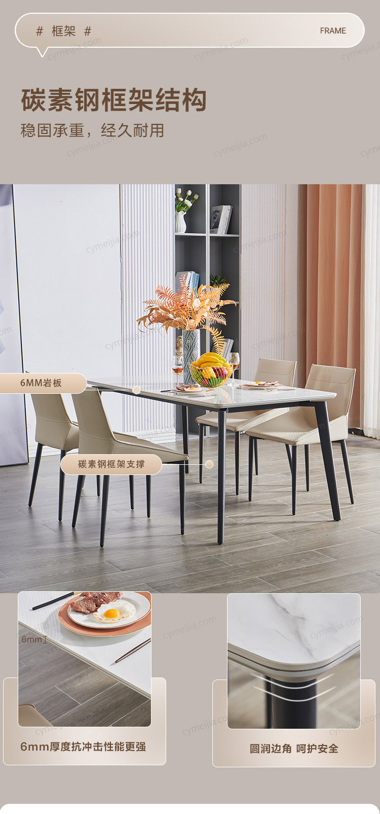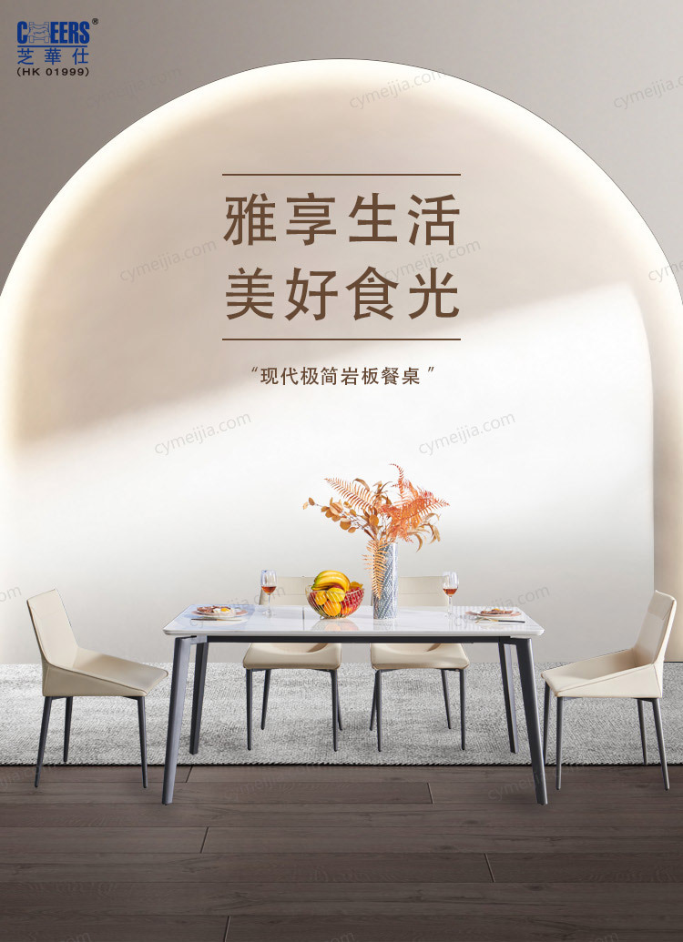 源自芝华仕,全球家居口碑之作。雅享系列,以现代简约重塑用餐体验。桌面选用纤薄雪山云纱岩板,纹理灵动似水墨;碳素钢脚架以轻盈之姿,提供稳固承托。圆润边角与宽敞桌底,于细节处尽显贴心。