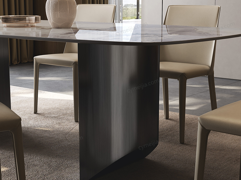 ◕ 不锈钢黑钛桌脚结构,闪耀金属质感与沉稳光泽,结构坚固耐用,稳定性极佳,为家居空间注入极简轻奢气息。