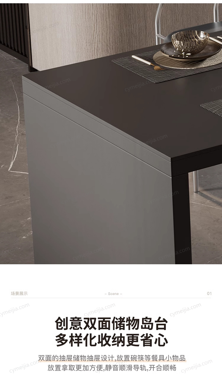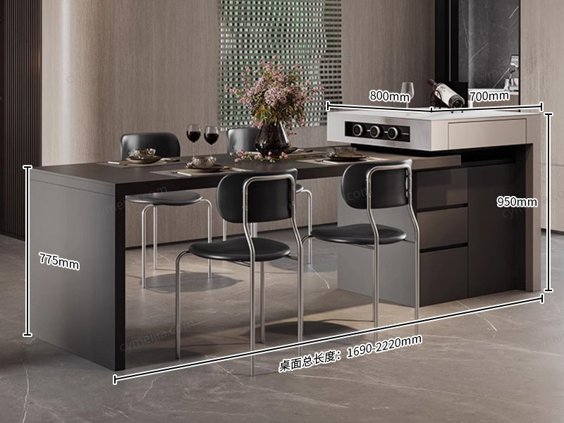 ✿ 岛台长度可在1.7米至2.2米间自由调节,完美适配小户型日常使用与大宅宴客需求,一桌满足多种家庭场景切换。