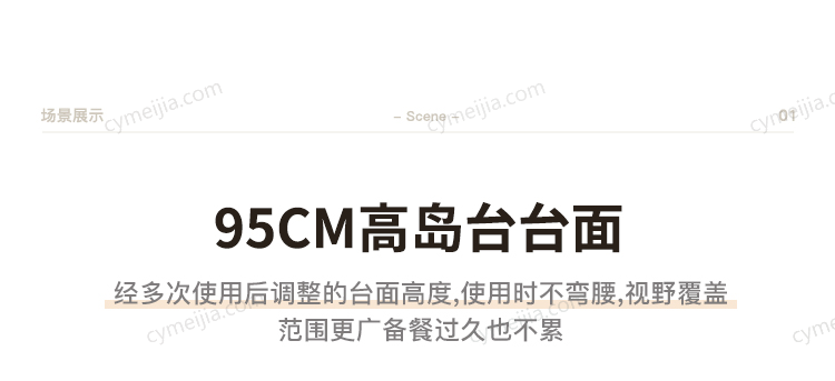 ☀ 95CM高岛台台面,经多次使用后调整的台面高度,使用时不弯腰,视野覆盖范围更广,备餐过久也不累。