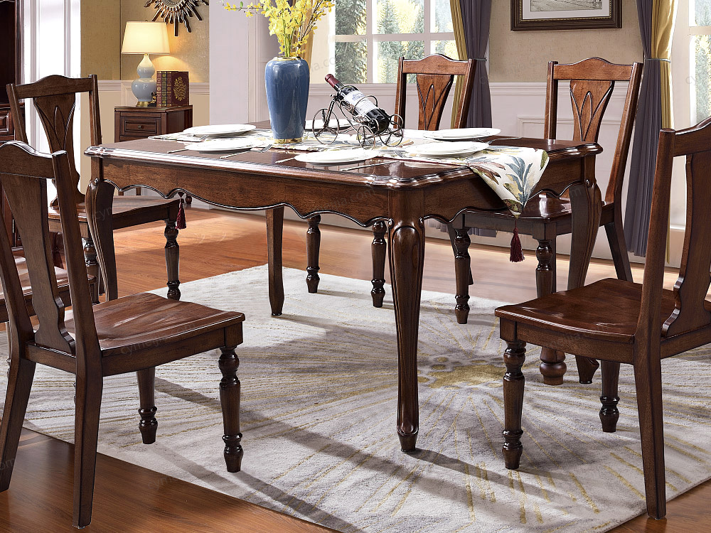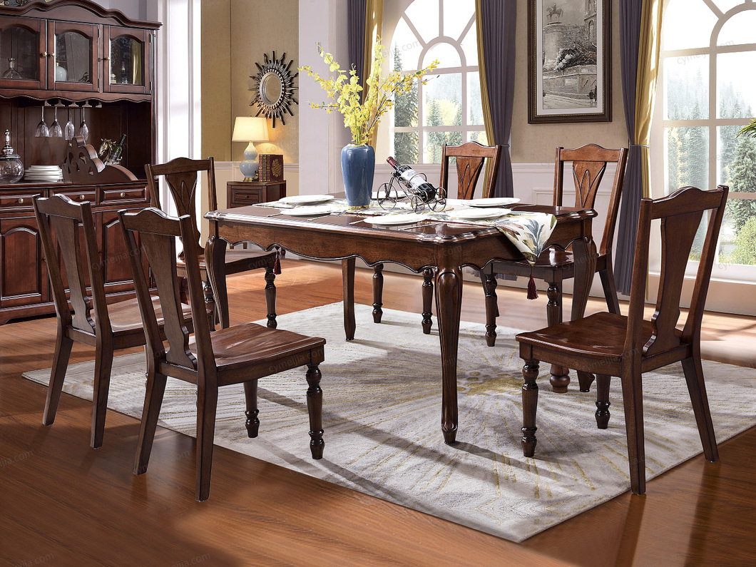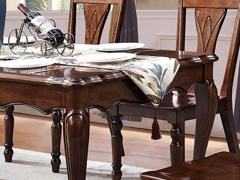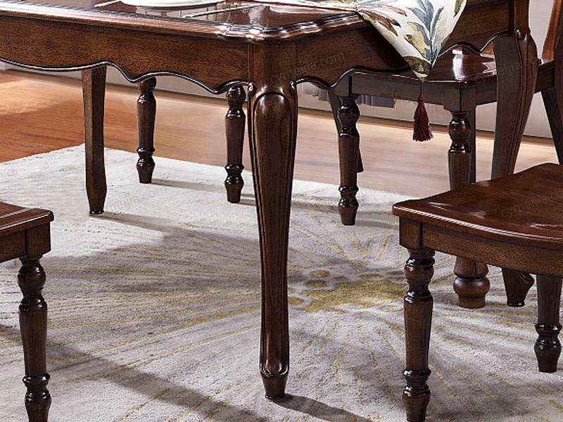 ◕ 桌腿为多曲线全实木造型,用料扎实确保餐桌稳固,同时以流畅线条消解厚重感,实现视觉灵动与结构稳固的平衡。