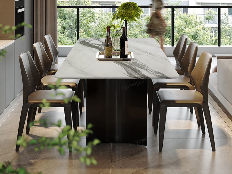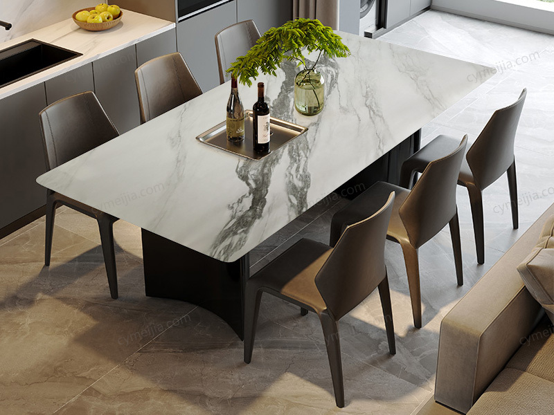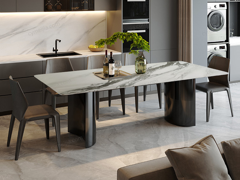 这款餐桌以现代设计语言诠释优雅生活。弯月弧形底座在视觉上营造出轻盈悬浮感,与晶莹润泽的台面构成巧妙对比,赋予空间灵动气息。其简洁轮廓与低奢气质,能无缝融入客厅、餐厅等多种家居环境,无论是日常用餐或社交聚会,皆能成为提升格调的艺术焦点。