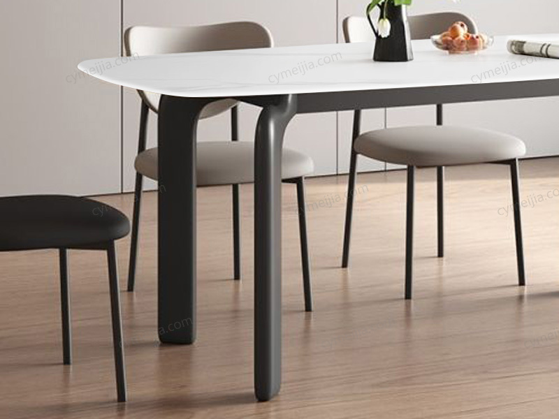 ☀ 桌腿采用一体成型的加宽加厚弓形钢琴烤漆碳素钢脚,弧度流畅且宽厚,与修长的桌面形成 “轻量感×稳重感”的视觉平衡。