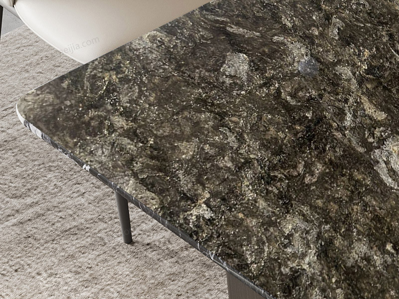 ◕ 内敛高贵、华彩纷呈铂金钻天然奢石,独一件的天然艺术品。台面保留天然石质纹理,通透细腻有光泽。整桌采用无缝奢石台面,一抹即净,轻松打理,兼具环保耐用与高收藏价值。