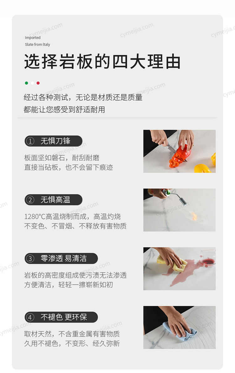 | 产品材质 : | 纯黑岩板+全承托底板+拉丝不锈钢 |