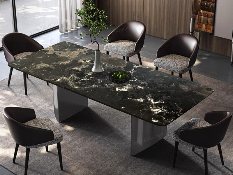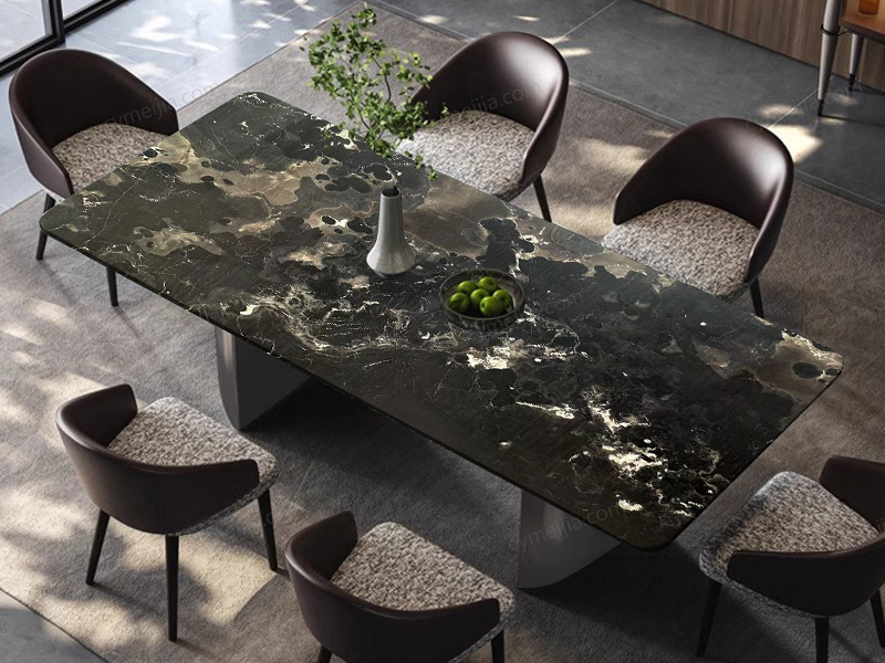 ◕ 纹理通透黑玫瑰天然奢石,独一件的天然艺术品。台面保留天然石质纹理,通透细腻有光泽。整桌采用无缝奢石台面,一抹即净,轻松打理,兼具环保耐用与高收藏价值。