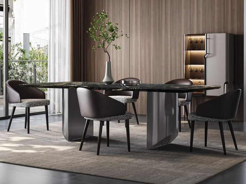 ☀ 极简轻奢主义代名词,轻松提升空间美学,设计感半月台桌腿,结合天然奢石流云舒展的纹理,让日常每一餐充满仪式感的浪漫。