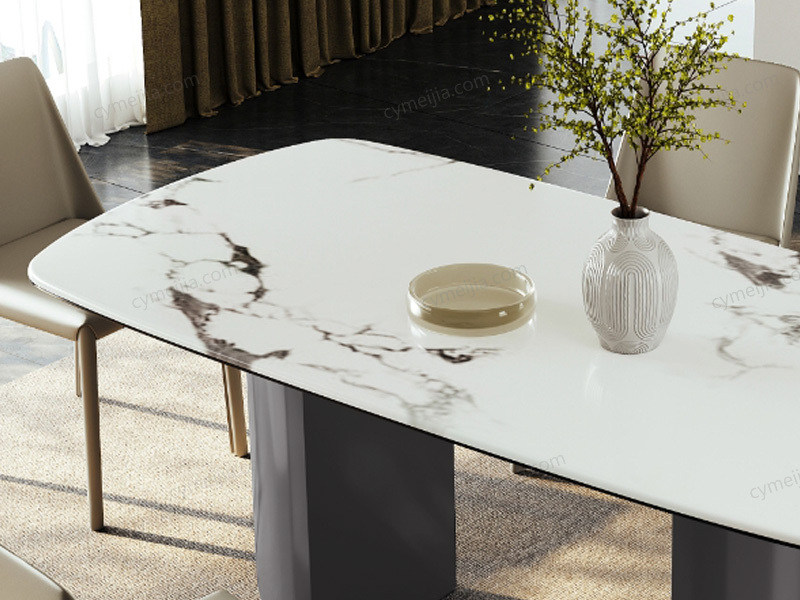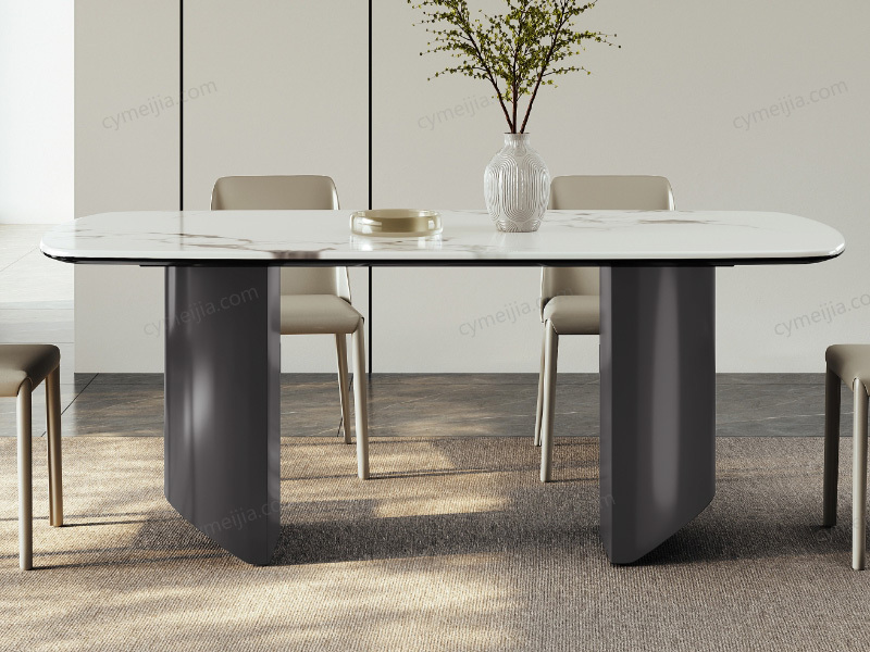 以绚丽璀璨的金妃白微晶石台面诠释现代轻奢,镜光流转的质感与半月弧形立体支撑相得益彰,结合坚韧的黑钛底架确保稳固承重。其流畅大圆弧转角为生活注入贴心安全,完美契合追求时尚格调与实用主义的都市精英家庭,在小户型的方寸之间也能营造出开阔而精致的生活仪式感。