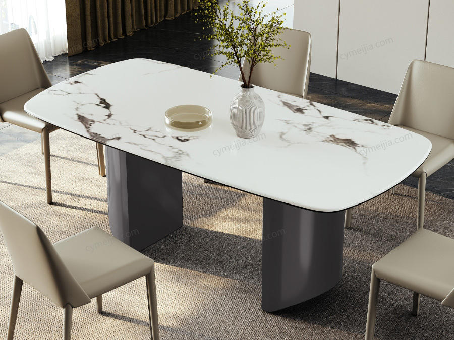 以绚丽璀璨的金妃白微晶石台面诠释现代轻奢,镜光流转的质感与半月弧形立体支撑相得益彰,结合坚韧的黑钛底架确保稳固承重。其流畅大圆弧转角为生活注入贴心安全,完美契合追求时尚格调与实用主义的都市精英家庭,在小户型的方寸之间也能营造出开阔而精致的生活仪式感。