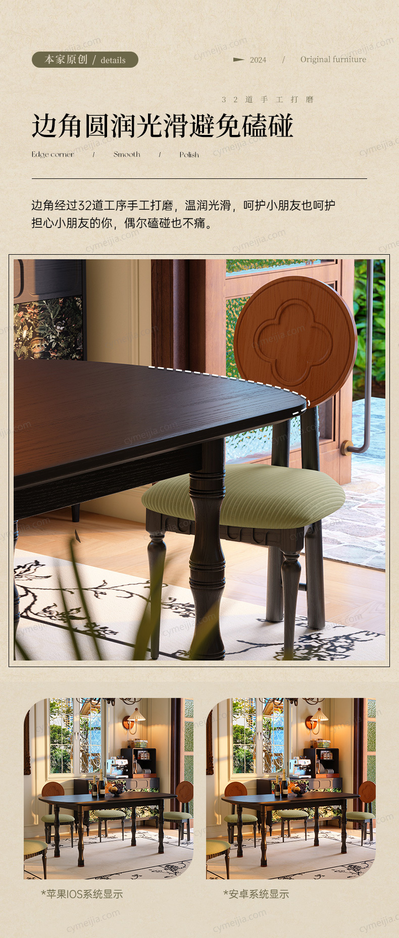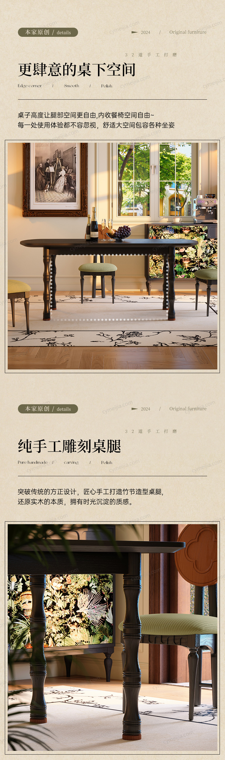 ☀ 艺术感竹节造型桌腿,复古雅致立体挺括,还原实木本质,细节处彰显独特格调。