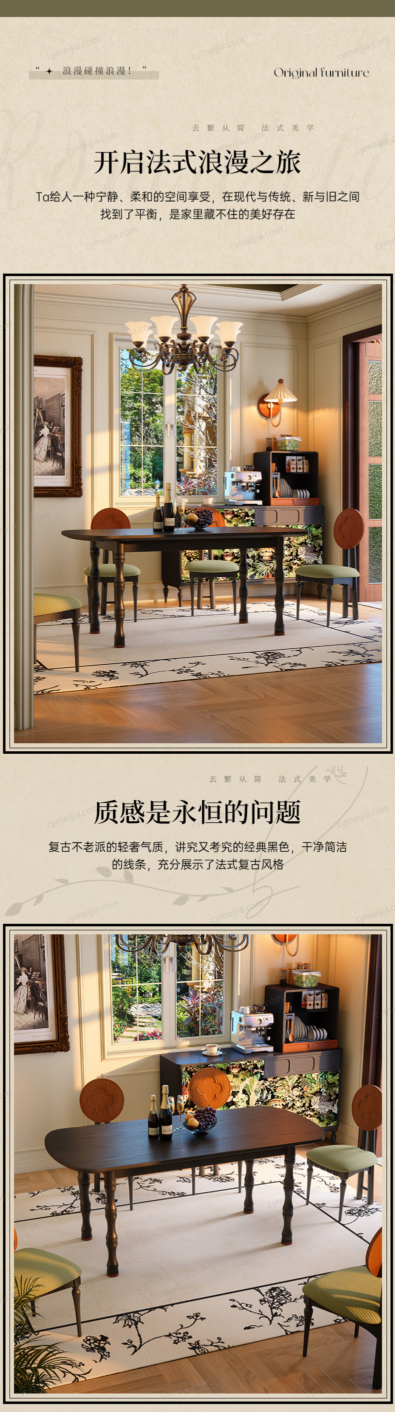 艺术感竹节造型桌腿,复古雅致,立体挺括。经典黑色搭配简洁线条,焕发复古不老派的轻奢气质。无论是温馨餐厅还是雅致咖啡角,它都能成为空间焦点,完美诠释讲究又考究的法式复古风情。