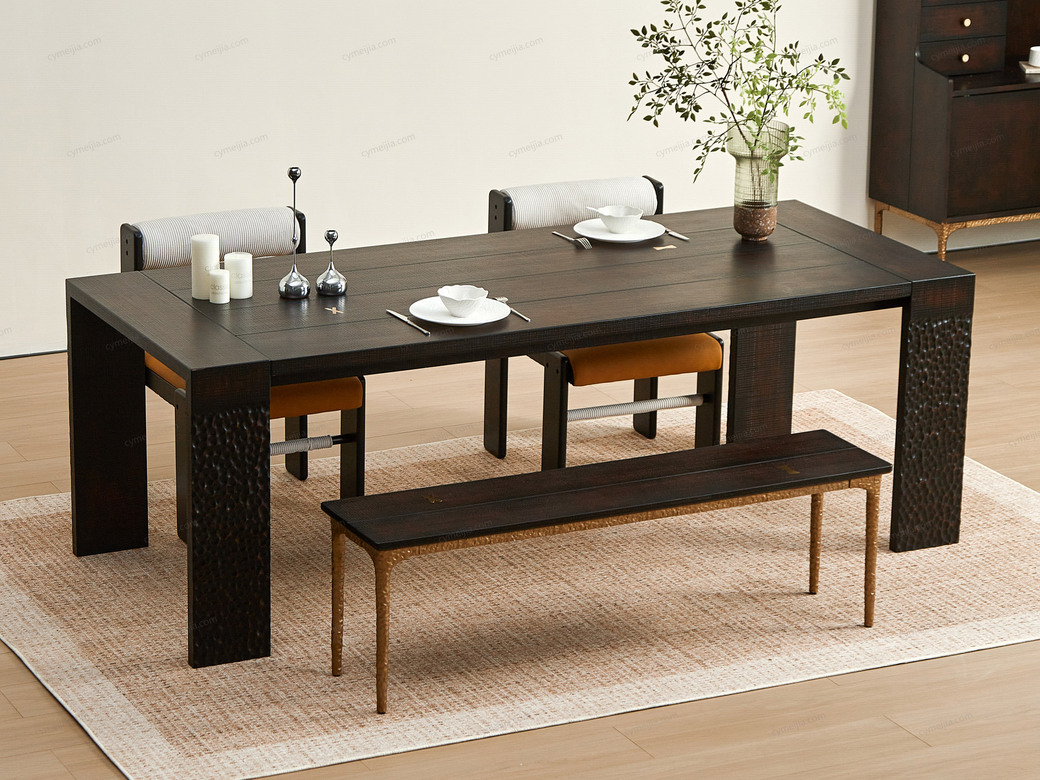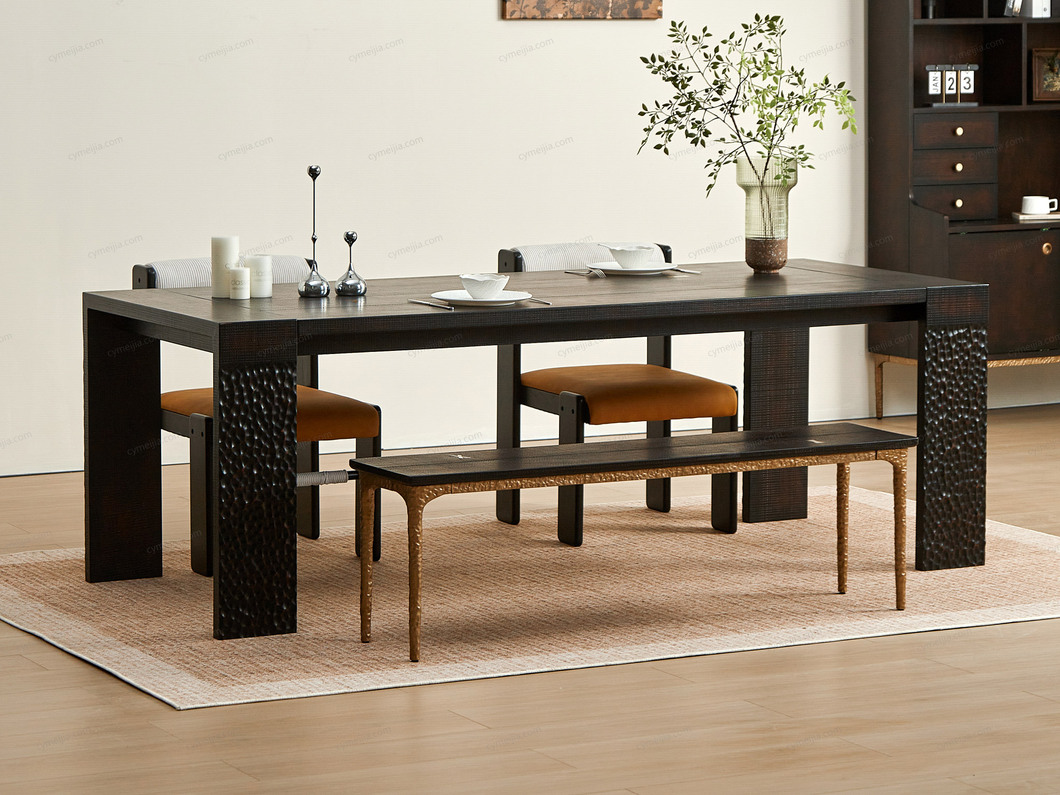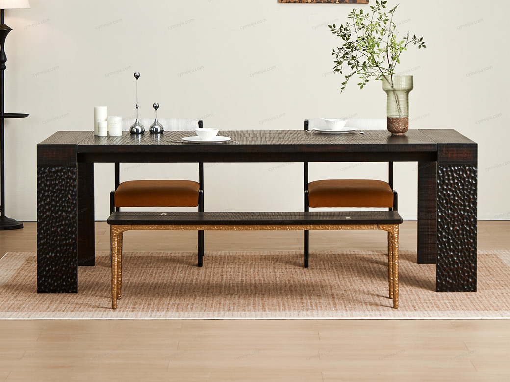 ◕ 采用实木大板直拼并缀以装饰铜件,搭配宽厚桌腿,在确保卓越稳固承重的同时,于细节处流露精致复古的审美趣味,2.2大尺寸多场景适配。