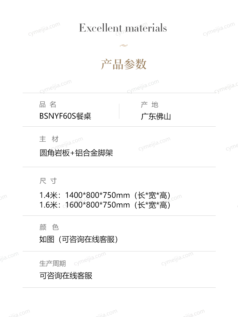 | 产品材质 : | 圆角哑光岩板+铝合金脚架 |