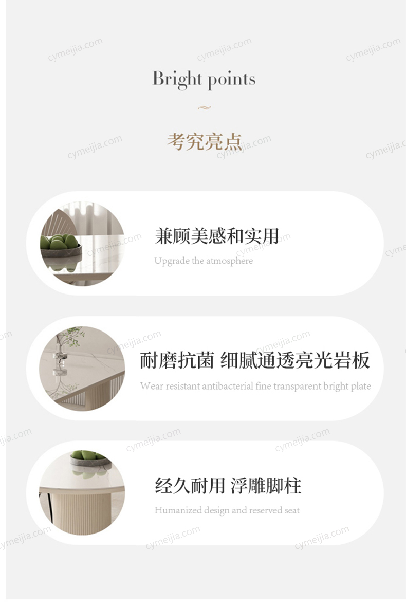 | 材质 : 岩板 | 尺寸 : 1.6米 | 颜色 : 奶白色 | 更多参数>> |