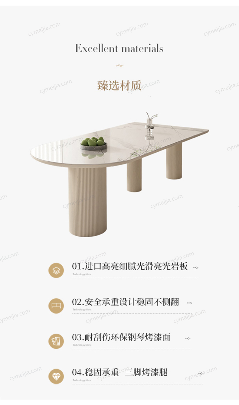 | 材质 : 岩板 | 尺寸 : 1.8米 | 颜色 : 奶白色 | 更多参数>> |