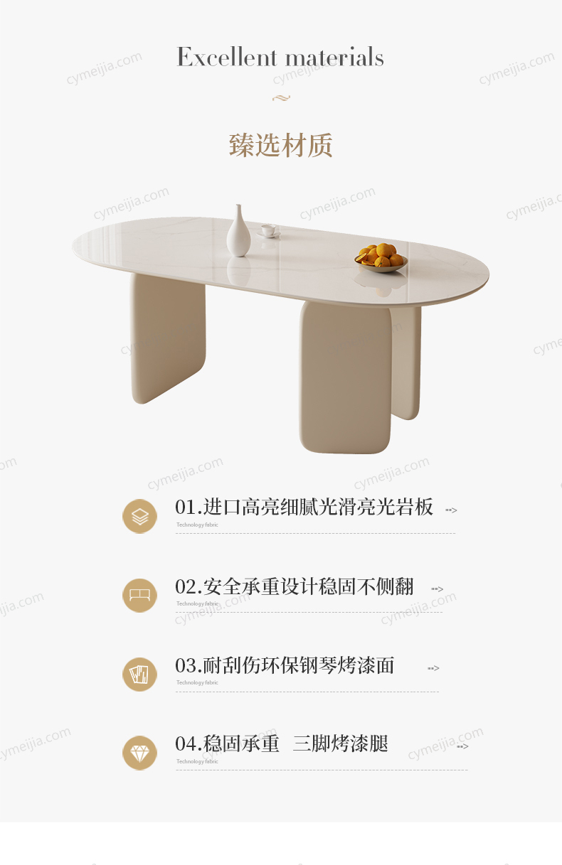 | 材质 : 岩板 | 尺寸 : 1.4米 | 颜色 : 奶白色 | 更多参数>> |