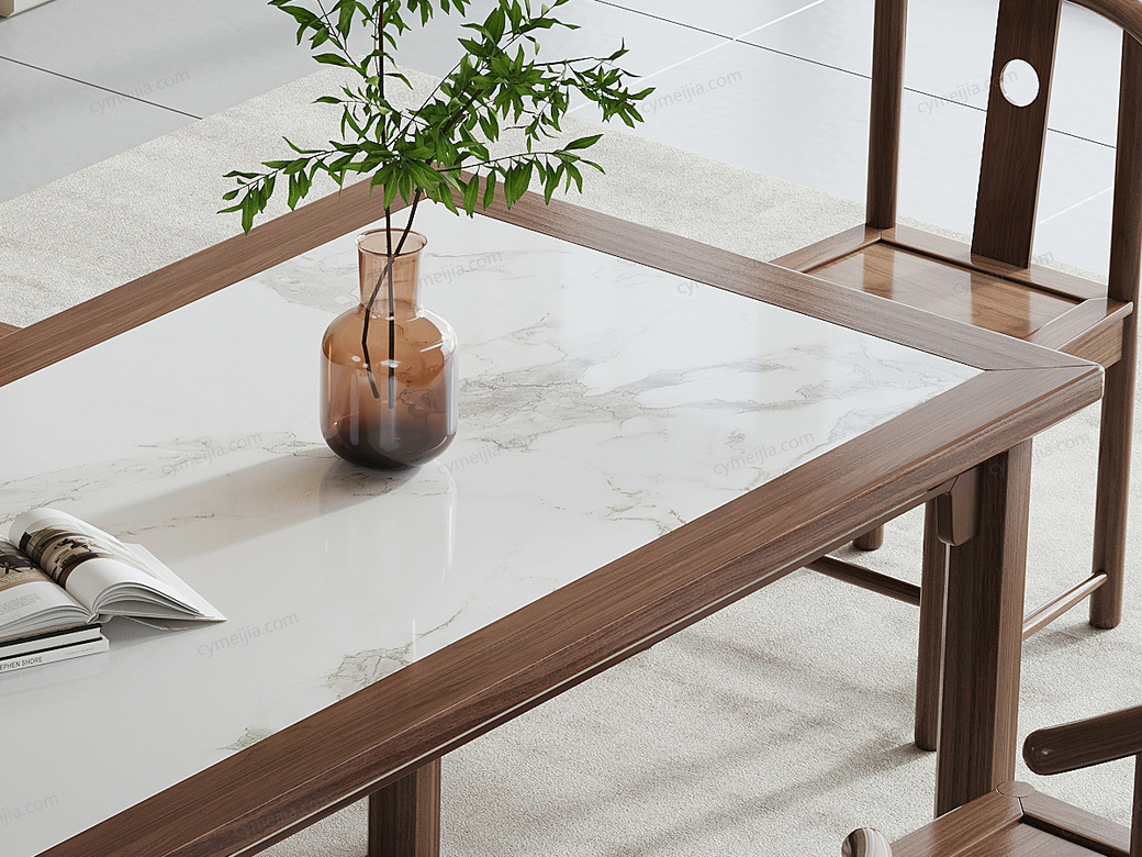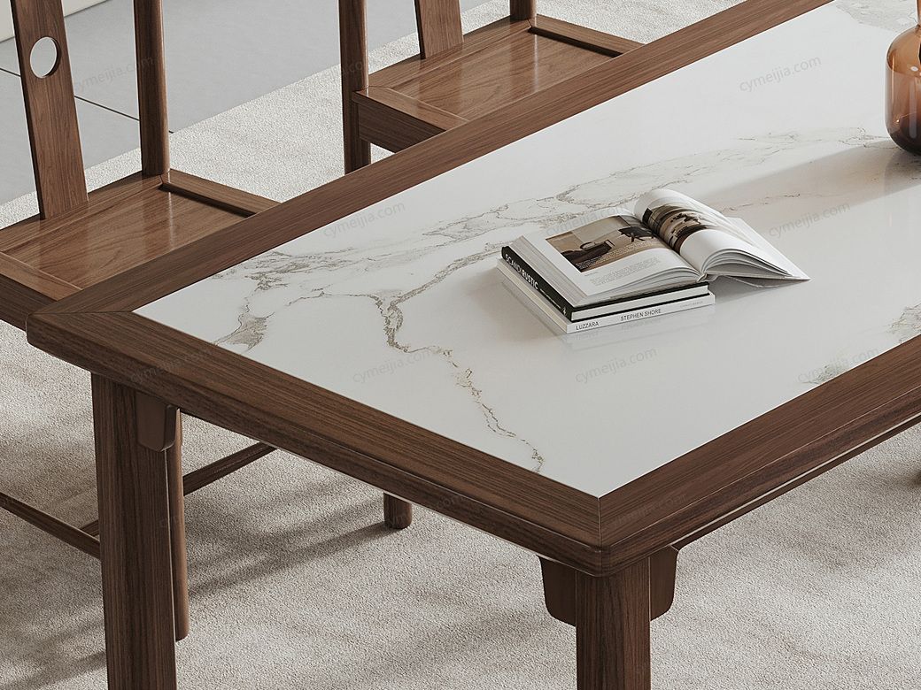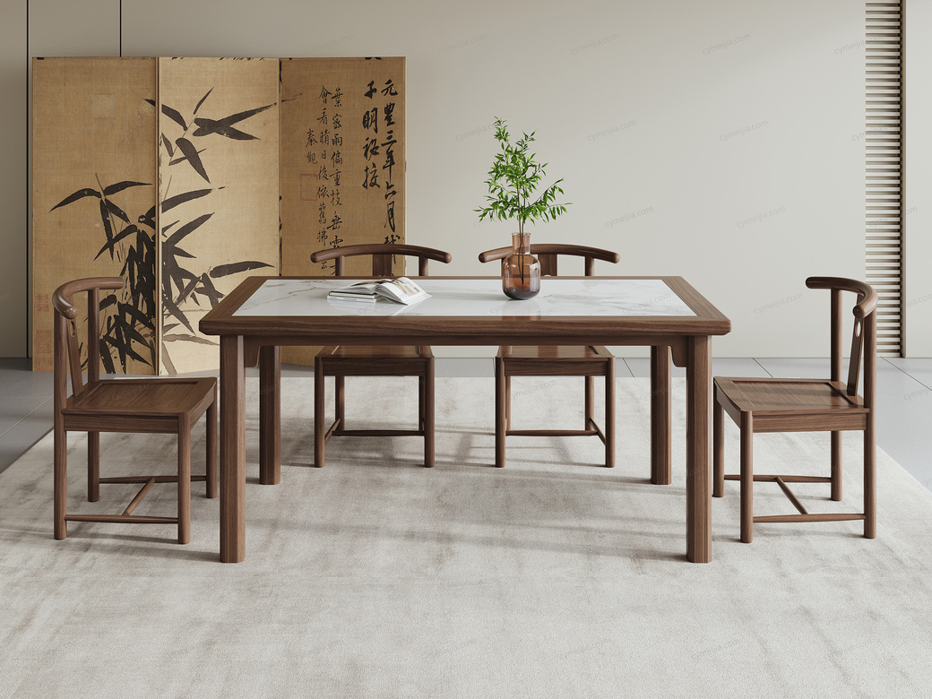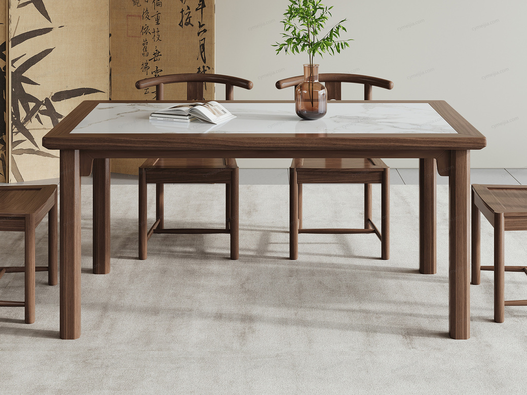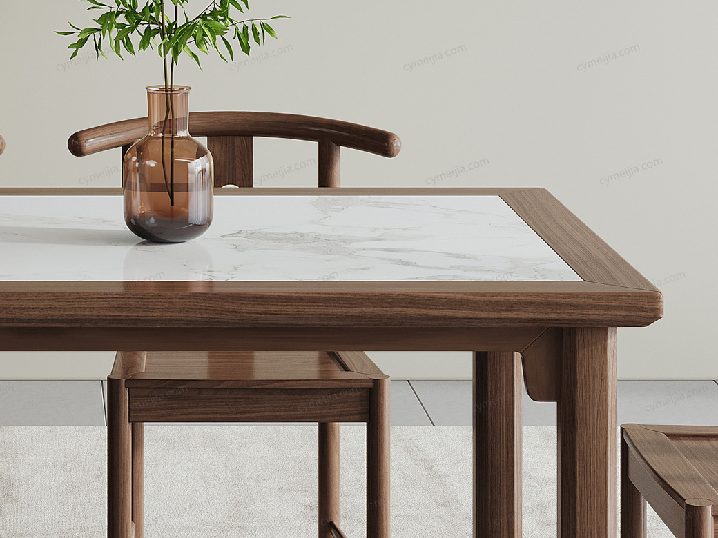 以宋式美学为灵感,甄选高品级北美白蜡木,结构扎实稳固。宽大岩板台面纹理自然,耐磨易打理。整体设计简约内敛,完美适配现代居所,无论是家庭晚餐、朋友小聚,或是作为居家办公的宽敞书桌,都能从容胜任,于日常中流露沉稳气韵。