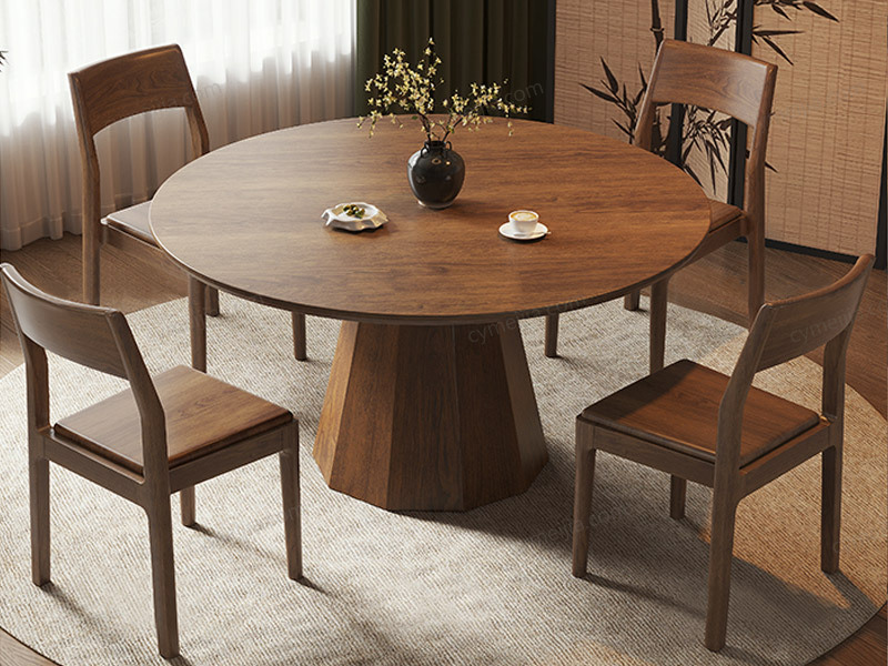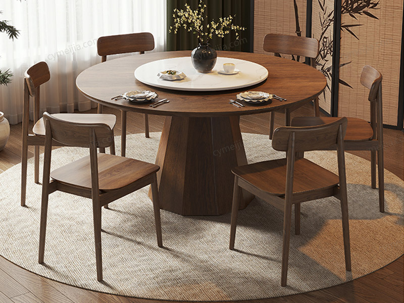 以北美白蜡木的温润质感承载东方意境,搭配细腻岩板转盘,展现"天圆地方"的和谐之美。无论是家庭团圆饭、茶室待客,还是书房雅集,它都能成为空间中的视觉焦点。其典雅线条与现代工艺相融合,可自然融入新中式、现代简约等多种家居风格,在流转的时光中沉淀家的温度与仪式感。