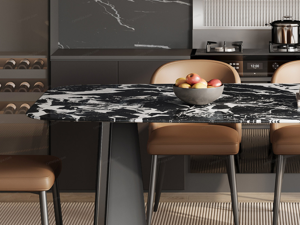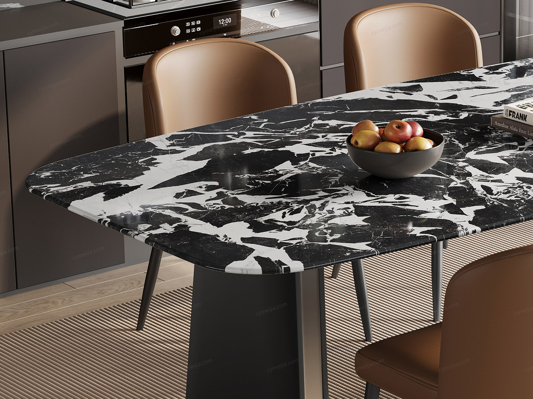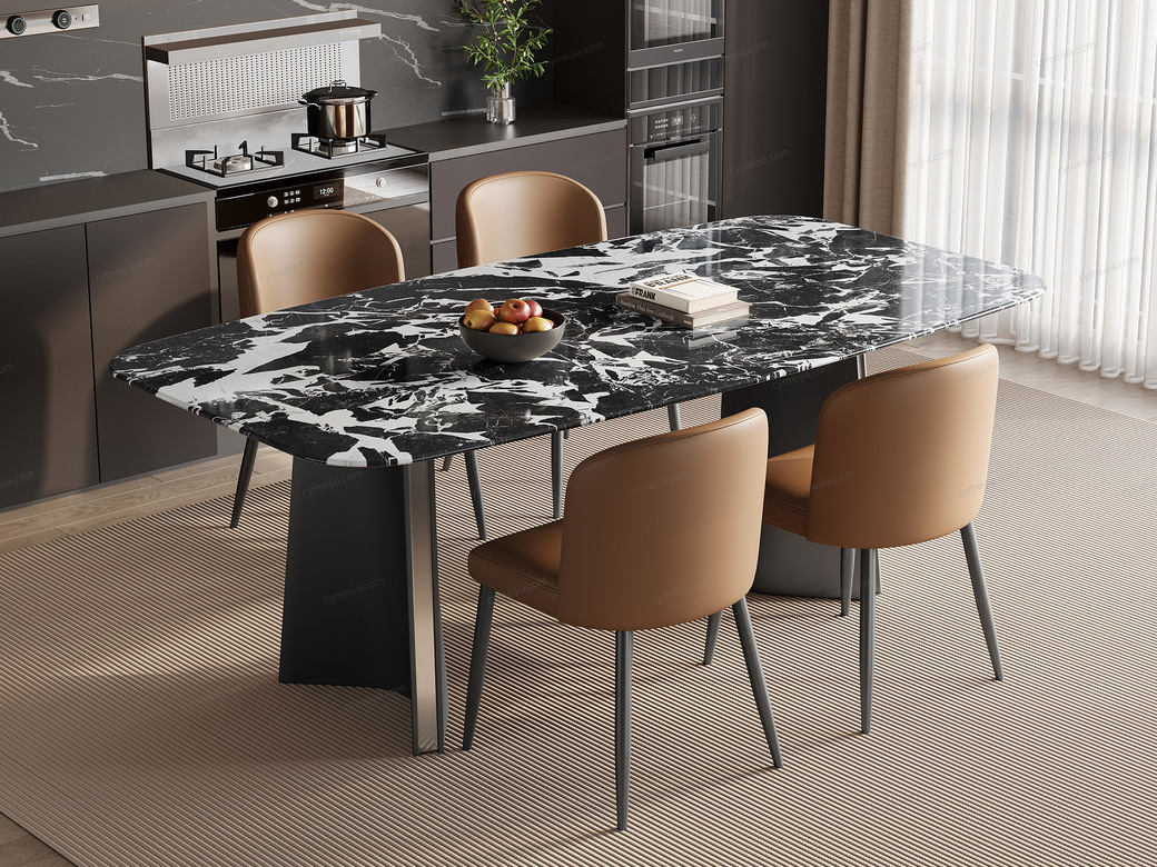 现代家庭的理想之选。独特的防磕碰马肚造型台面与双C折角桌腿,将圆润安全感与几何艺术感完美结合,为餐厅瞬间提升格调。餐桌设计充分考量家庭使用场景,边角圆润,尤其适合有小孩或老人的家庭。集优雅设计、实用安全与亲民价格于一身,以极高的性价比,为您打造一个温馨又安心的用餐空间。