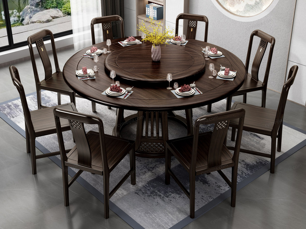| 材质 : 实木 | 产地 : 佛山 | 规格 : 餐桌:直径1380*高760mm;转盘:直径780mm | 更多参数>> |