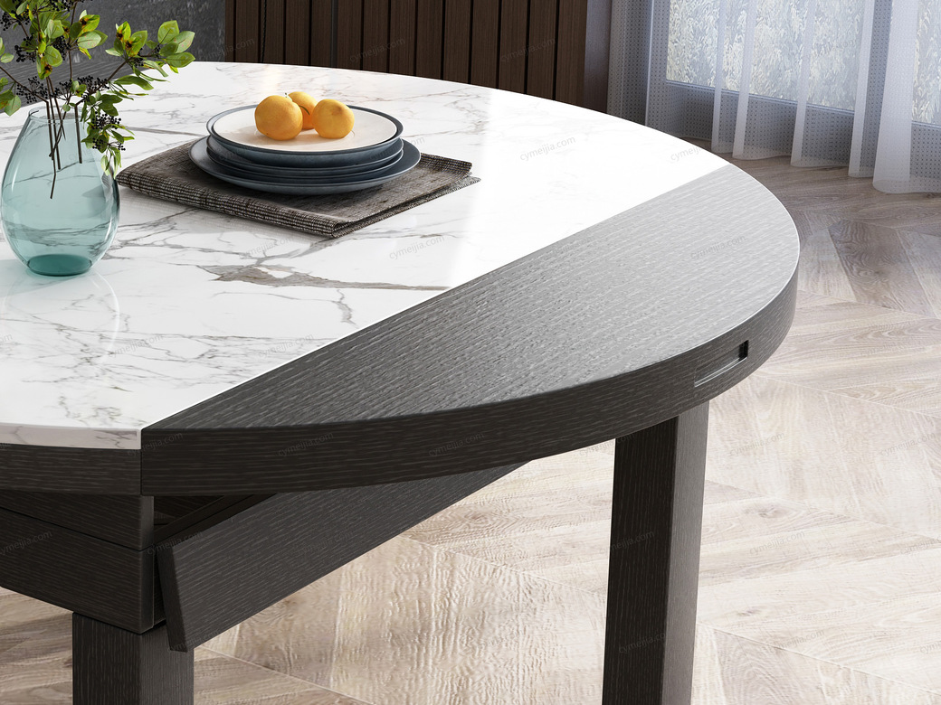 | 材质 : 大理石 | 尺寸 : 1.35米 | 颜色 : 框架:黑色 台面:白色大理石 | 更多参数>> |