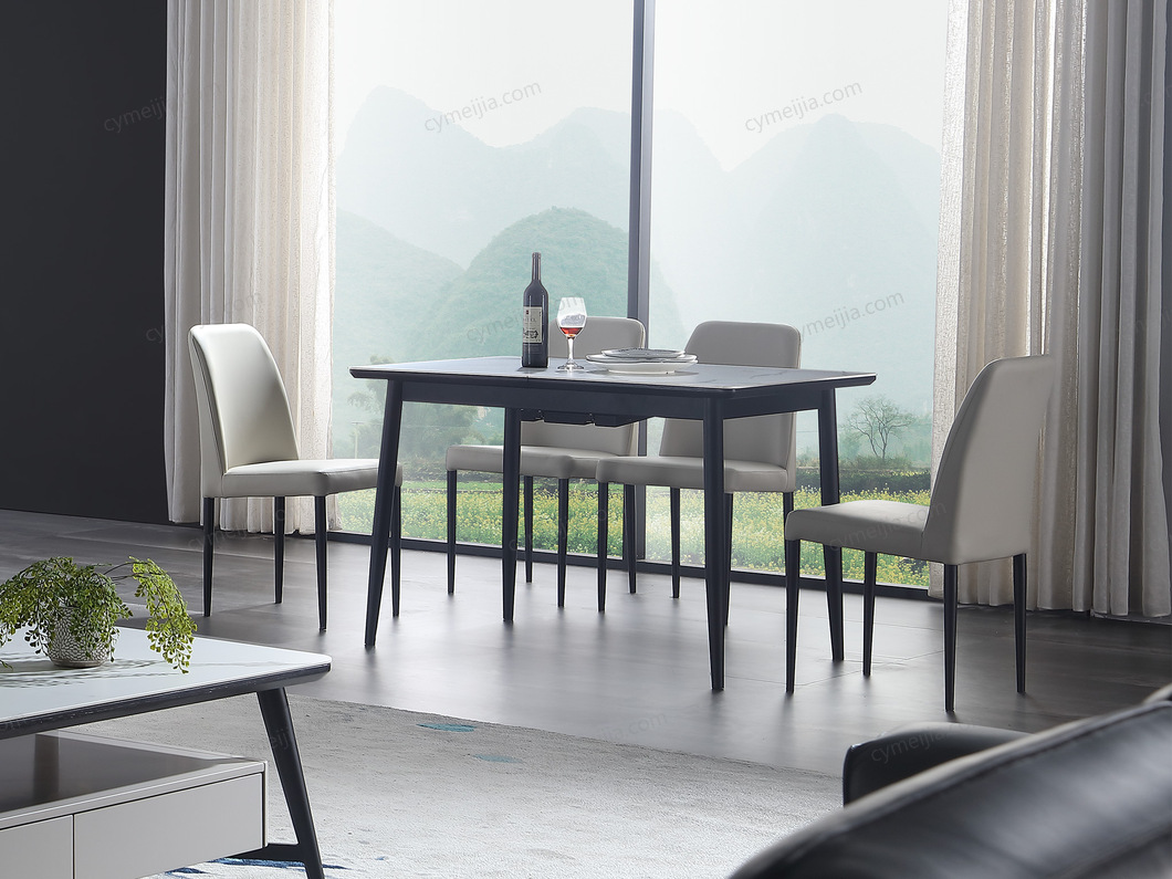 | 产品材质 : | 哑光岩板面+碳素钢框架脚(喷黑砂漆)+板材贴木皮 |