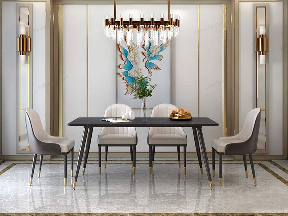 | 产品材质 : | 劳伦黑金哑光岩板+粘15厘板(桌面) 碳素钢黑砂+铜套(底架) |