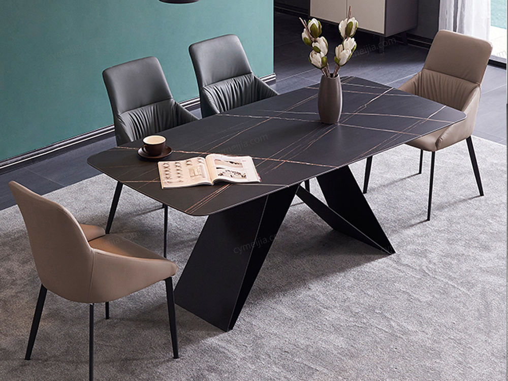 | 产品材质 : | 劳伦黑金哑光岩板+粘15厘板(桌面) 碳素钢黑砂(底架) |