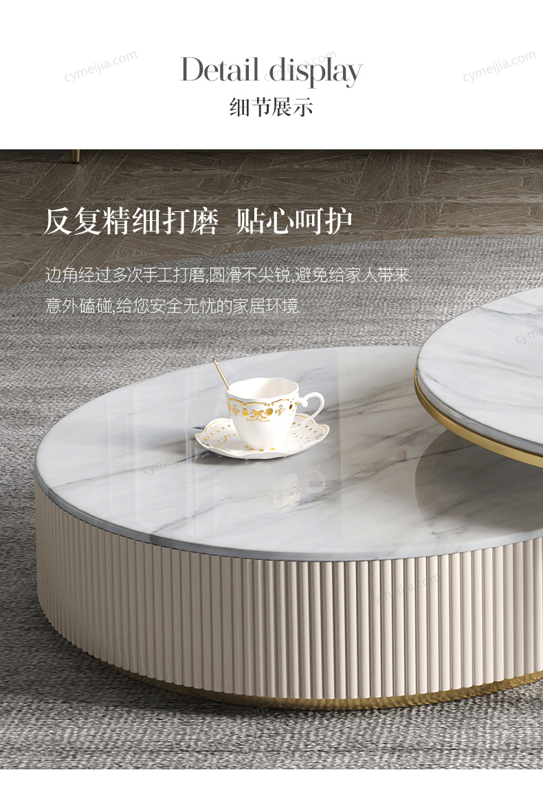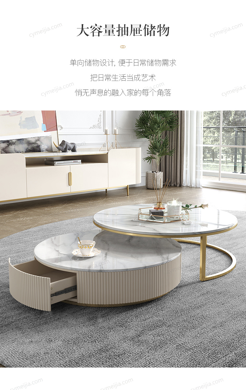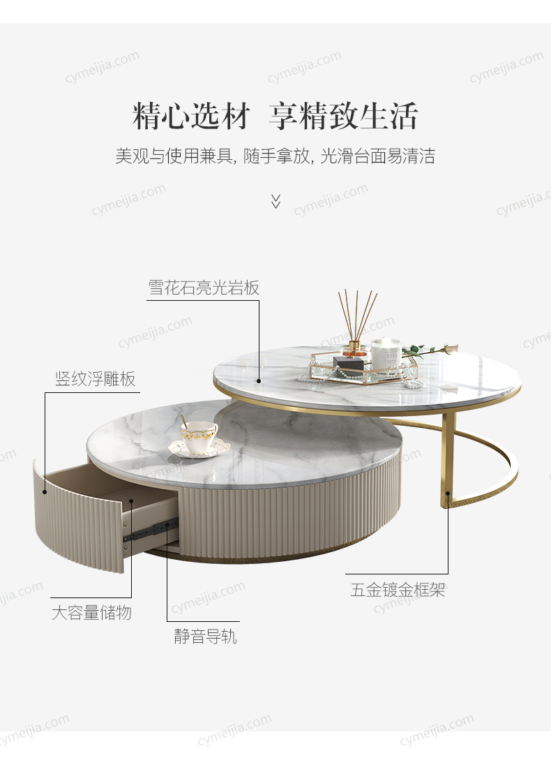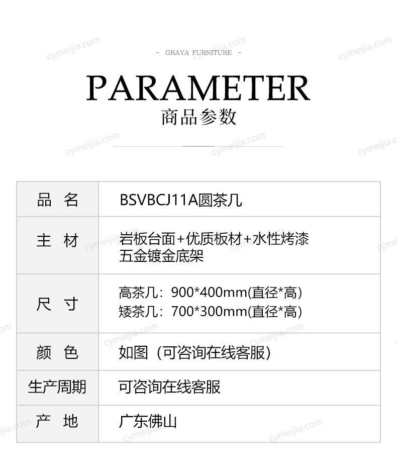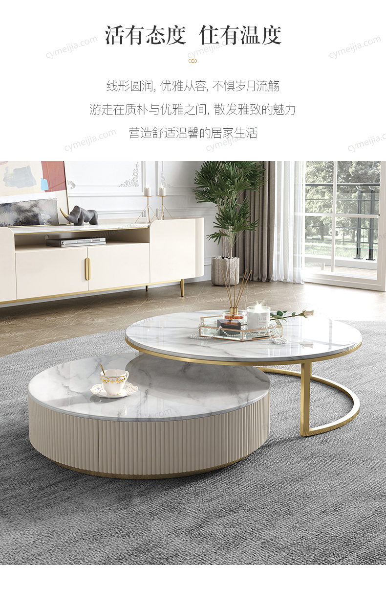 | 颜色 : 雪花石 | 产地 : 佛山 | 规格 : 大茶几:直径900*高400mm 小茶几:直径700*高300mm | 更多参数>> |