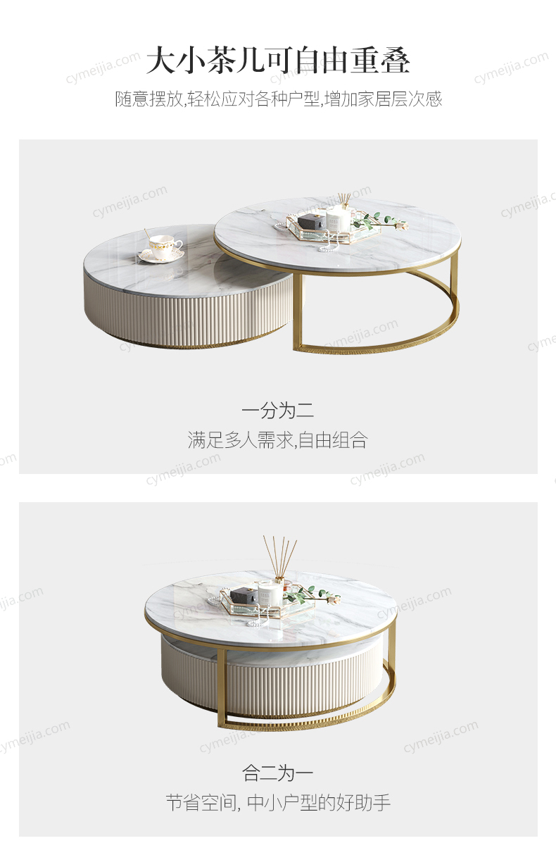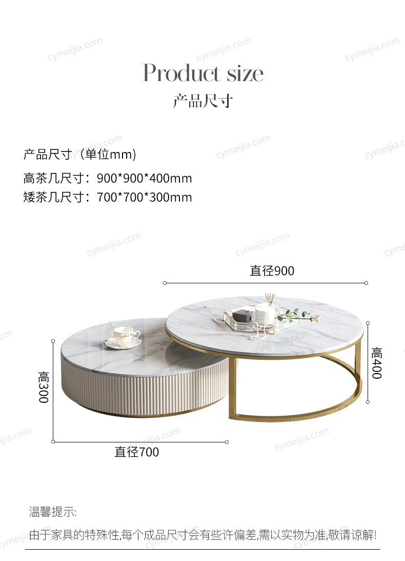 | 规格 : | 大茶几:直径900*高400mm 小茶几:直径700*高300mm |