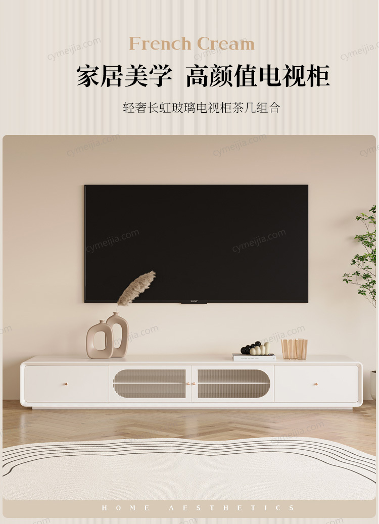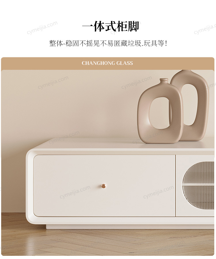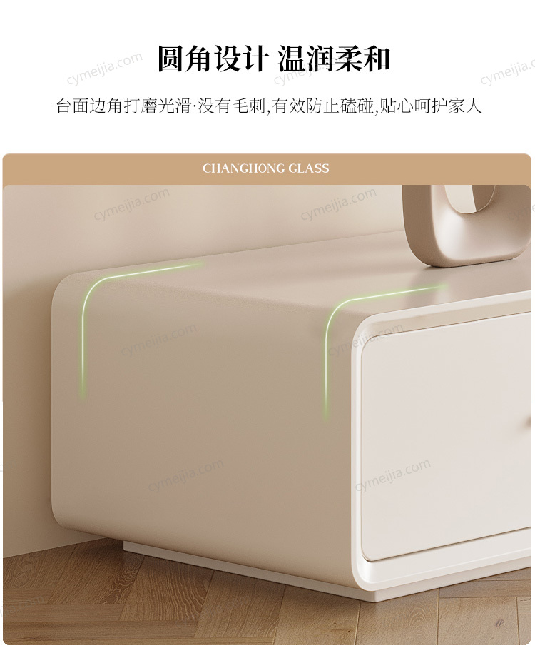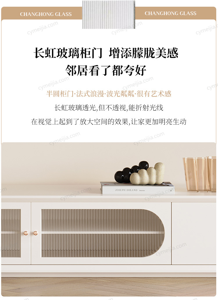 | 产品材质 : | 钢琴烤漆工艺+实木抽屉+缓冲轨道+长虹玻璃柜门 |