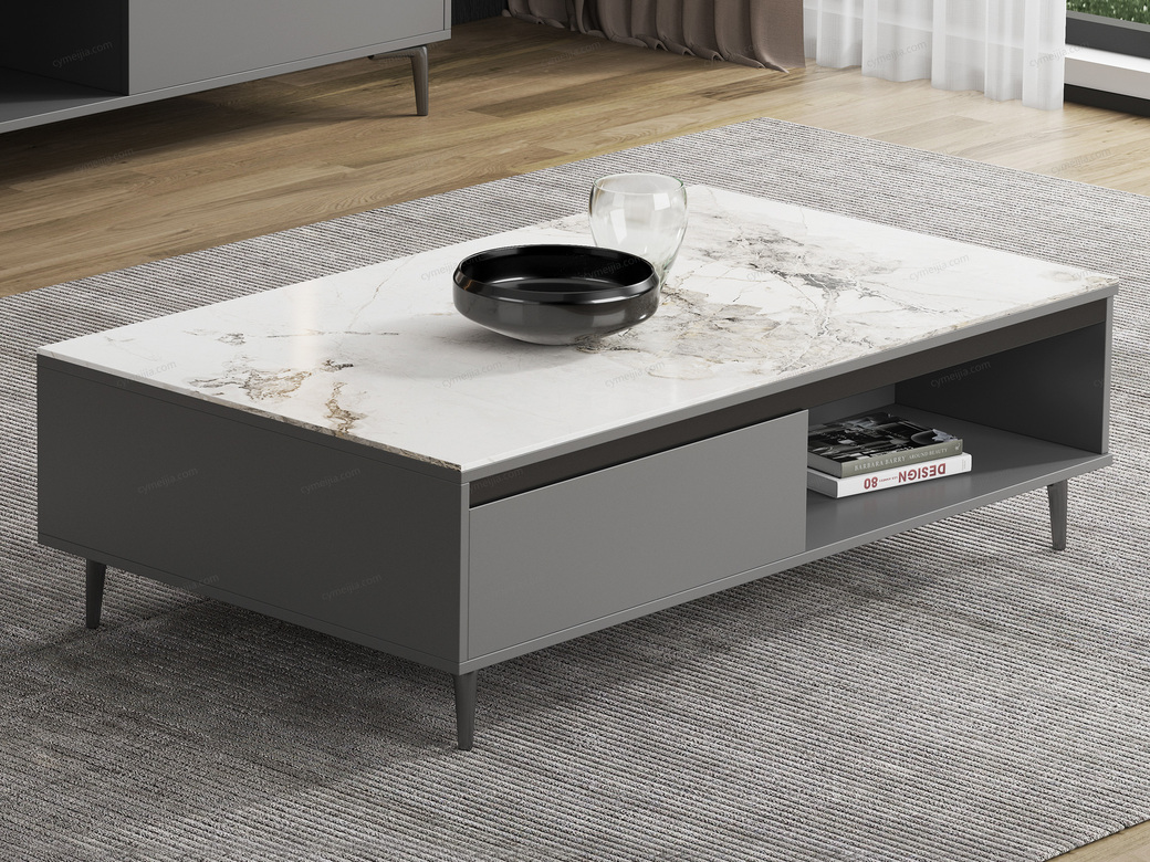 | 类型 : 茶几 | 规格 : 长1300*宽700*高380mm | 产品材质 : 香奈儿亮光岩板+免漆板+碳素钢脚 | 更多参数>> |