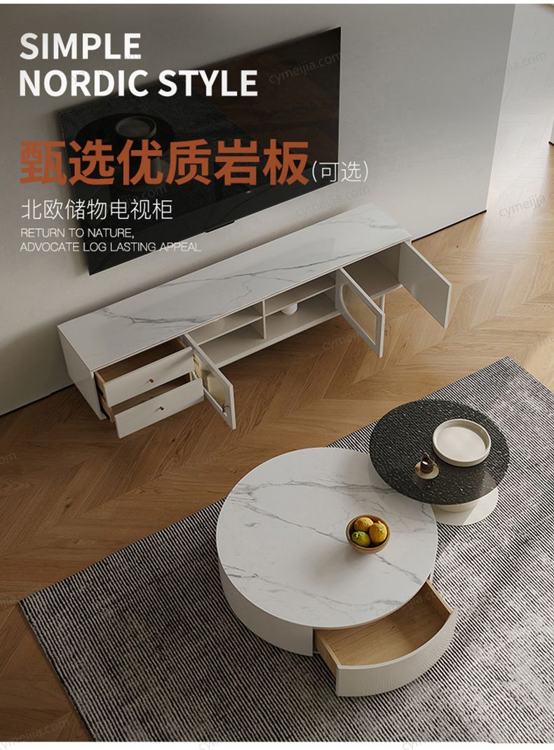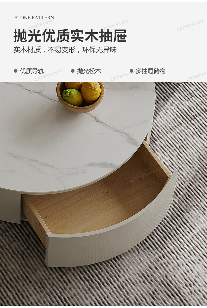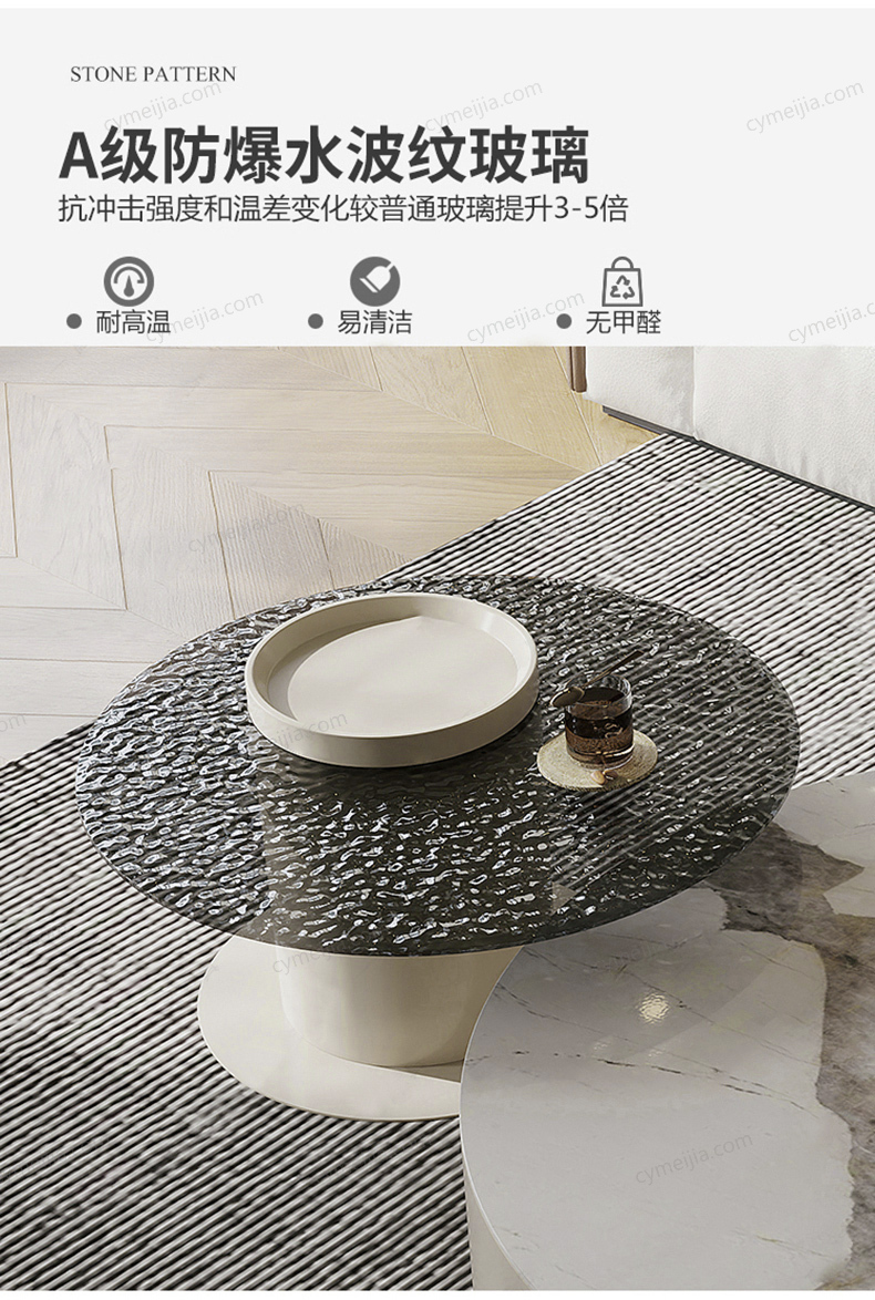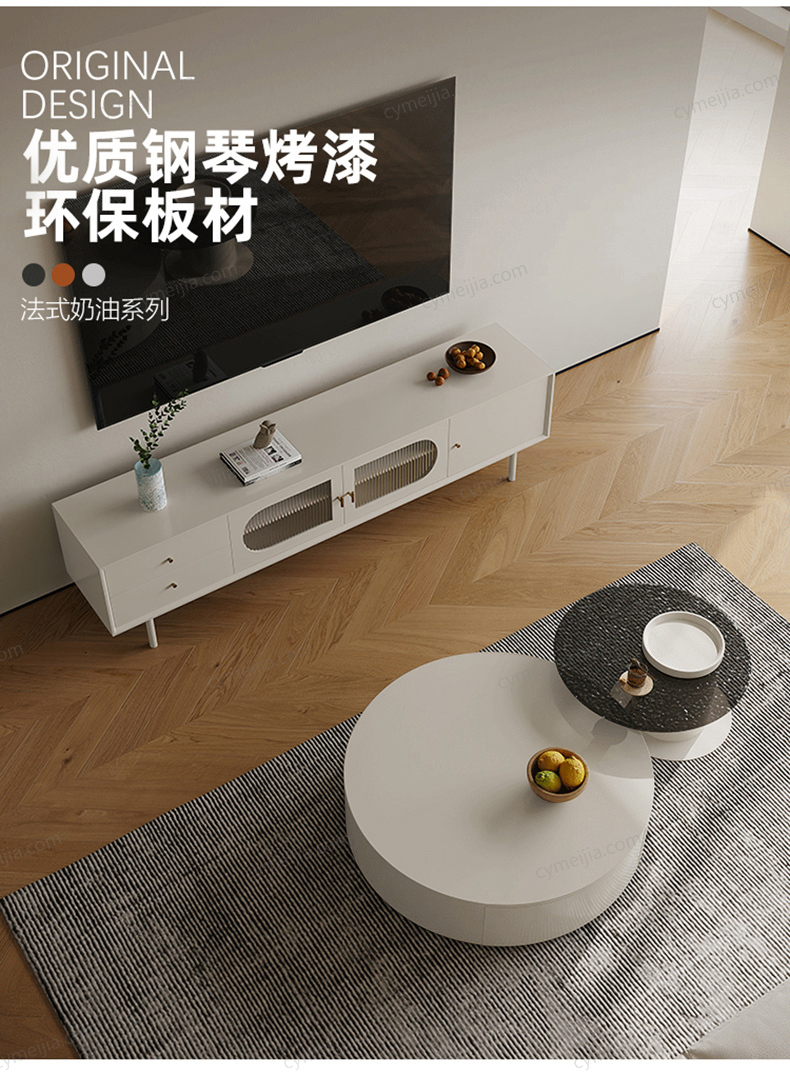 | 产品材质 : | 潘多拉亮光岩板+E1级板材烤漆+实木抽屉+水波纹玻璃 |