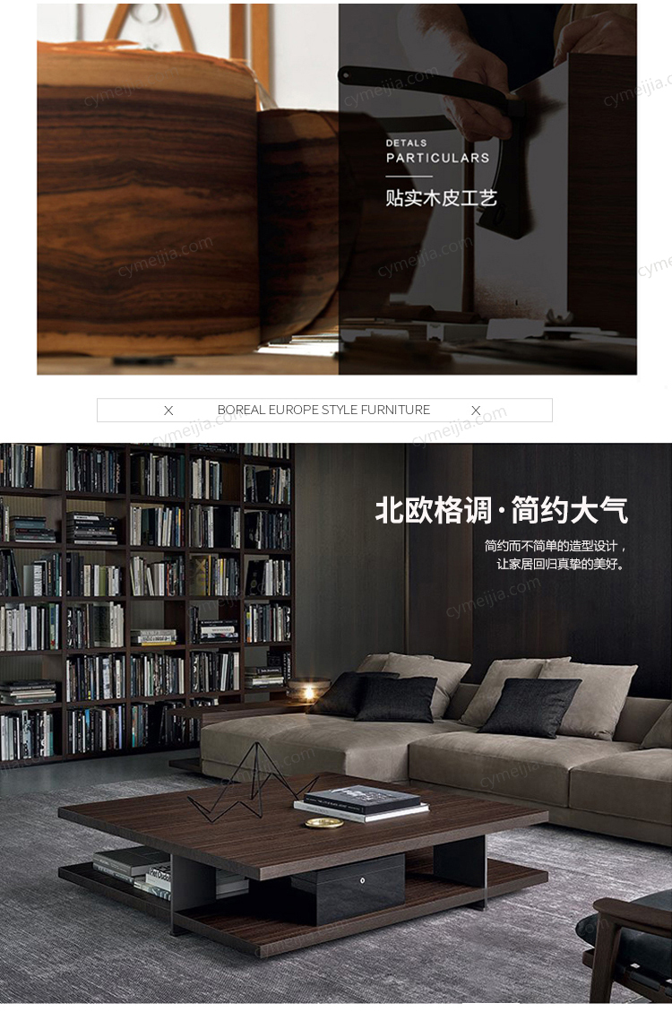 | 产品材质 : | 50丝进口烟熏白橡木皮+五金脚 |