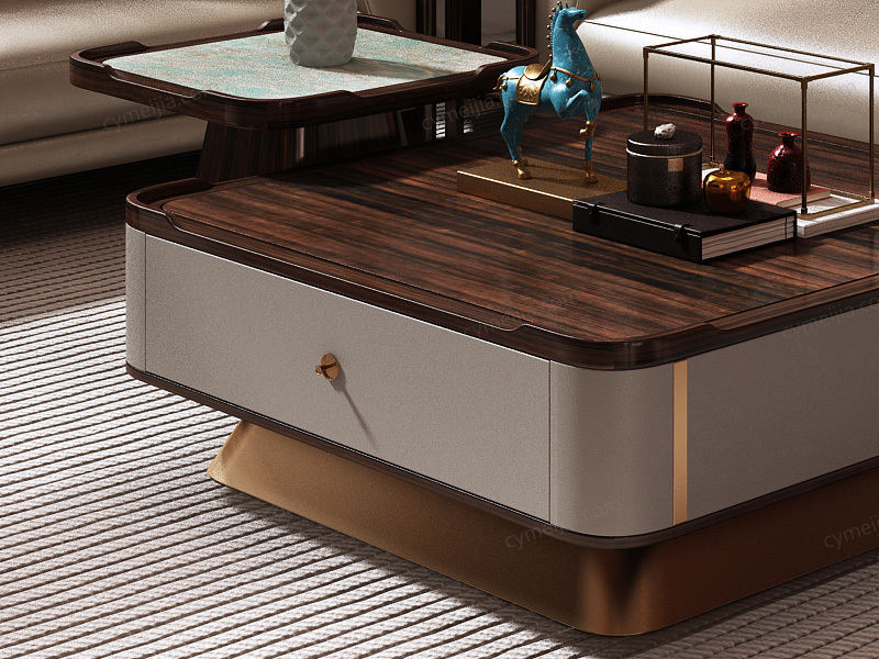 | 产品材质 : | 小叶龙凤檀木+纳帕皮+镀铜不锈钢+孔雀绿亮光岩板面 |