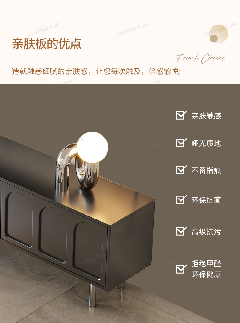 | 产品材质 : | 钢琴烤漆工艺+实木抽屉+缓冲轨道+环保亲肤板 |