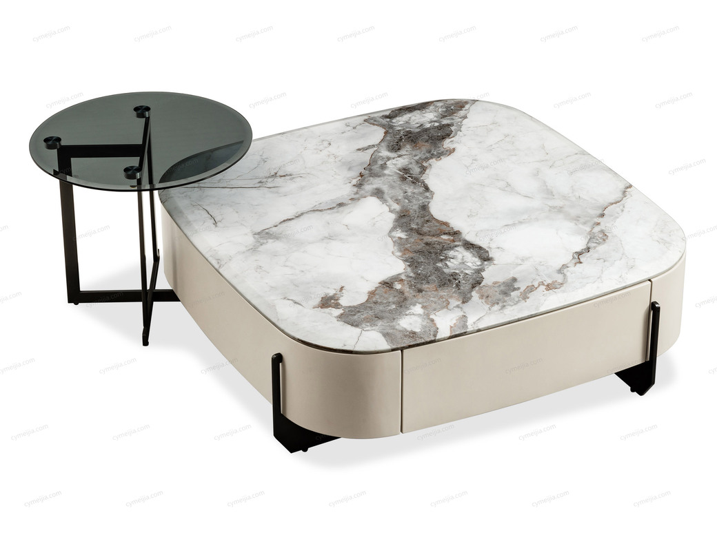 | 产地 : 佛山 | 规格 : 茶几:长900*宽900*高330mm;角几:直径500*高440mm | 产品材质 : 大理石面+灰色钢化玻璃+不锈钢黑钛脚架+烤漆木柜 | 更多参数>> |