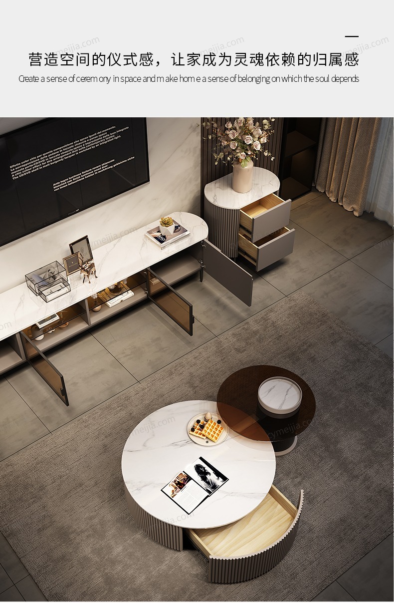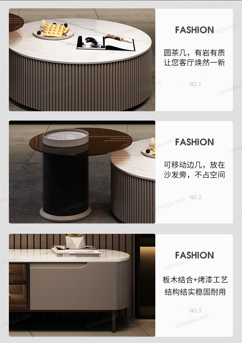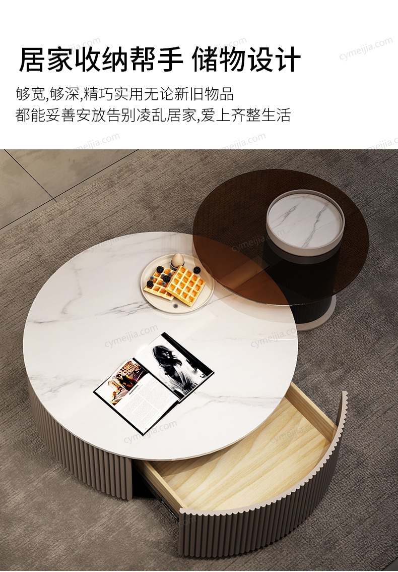 | 产地 : 佛山 | 规格 : 大几直径900*高320;小几直径500*高420mm | 产品材质 : 亮光雪山白岩板+玻璃+板木结合 | 更多参数>> |