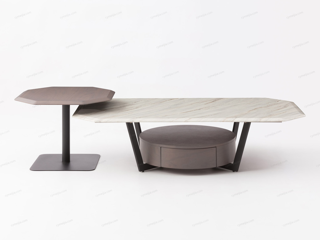 | 产地 : 佛山 | 规格 : 茶几:长1400*宽750*高360mm;角几:长600*宽600*高450mm | 产品材质 : 茶几:人造大理石(18mm厚)+实木抽屉+砂纹黑喷涂五金架立柱+密度板贴灰胡桃木皮;角几:砂纹黑喷涂五金架立柱/底板+灰胡桃木皮面板 | 更多参数>> |