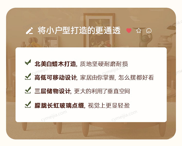 ☀ 高低可移动设计,家居布局随心调整,怎么摆都好看。