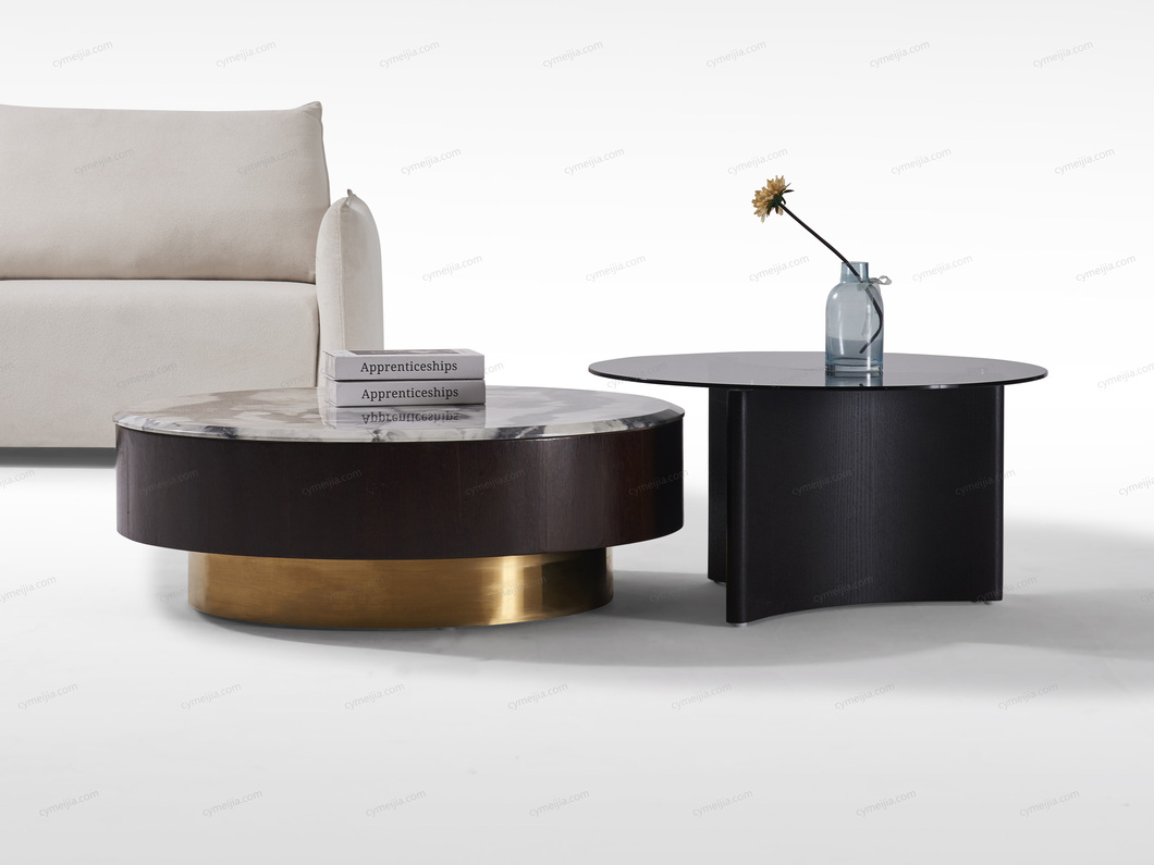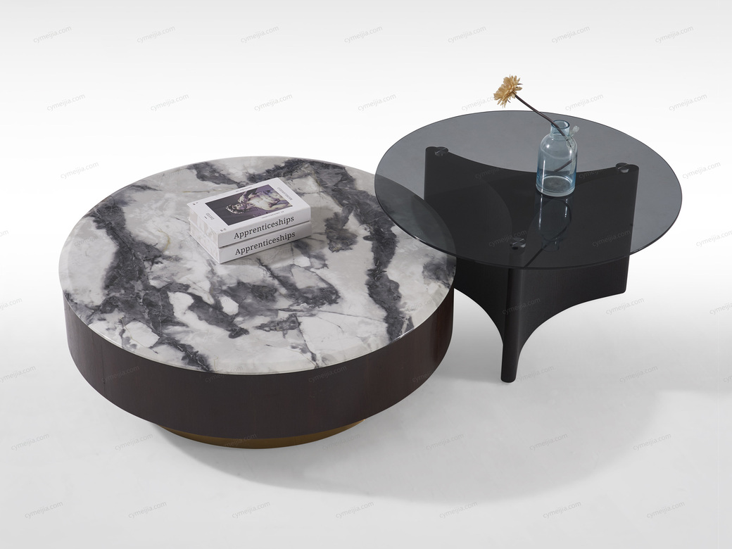 | 产地 : 佛山 | 规格 : 大圆茶几:直径1000*高305mm;小圆茶几:直径800*高415mm | 产品材质 : 大理石+烟熏木皮+不锈钢+实木多层板+E1级环保板 | 更多参数>> |
