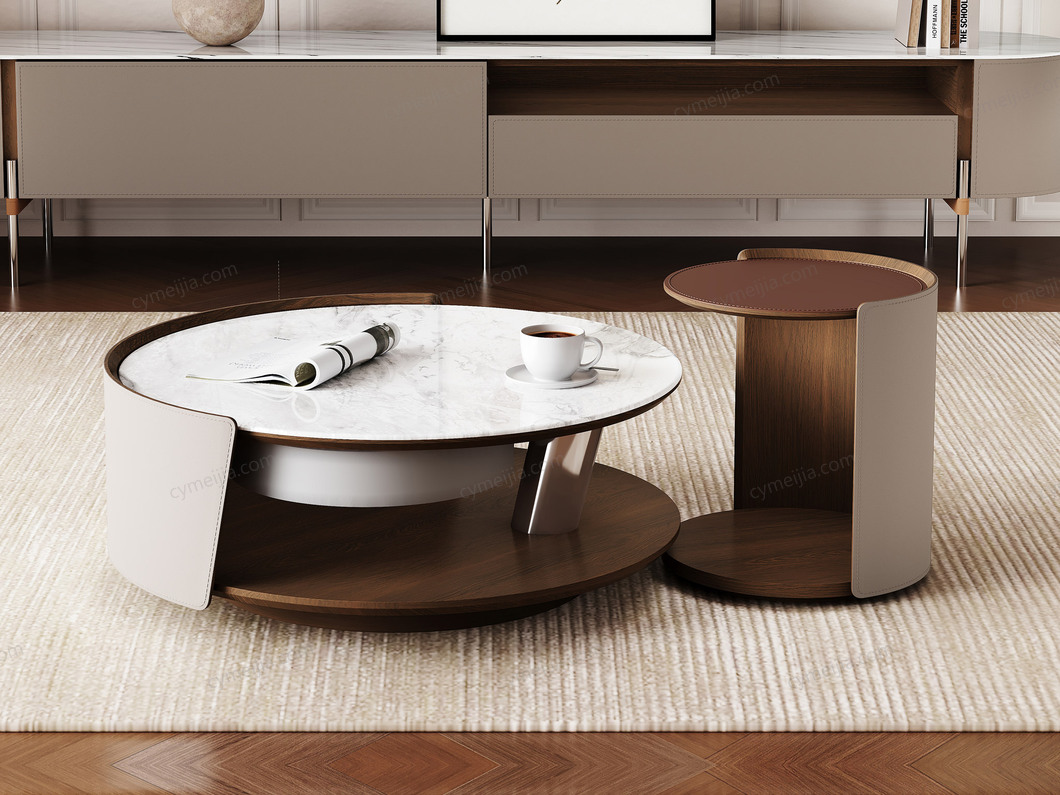 | 产地 : 佛山 | 规格 : 大圆:直径900*高360mm ;小圆:直径450*高460mm | 产品材质 : 微晶石+马鞍皮+黑胡桃木皮+实木+不锈钢 | 更多参数>> |