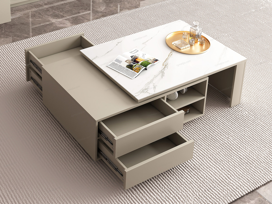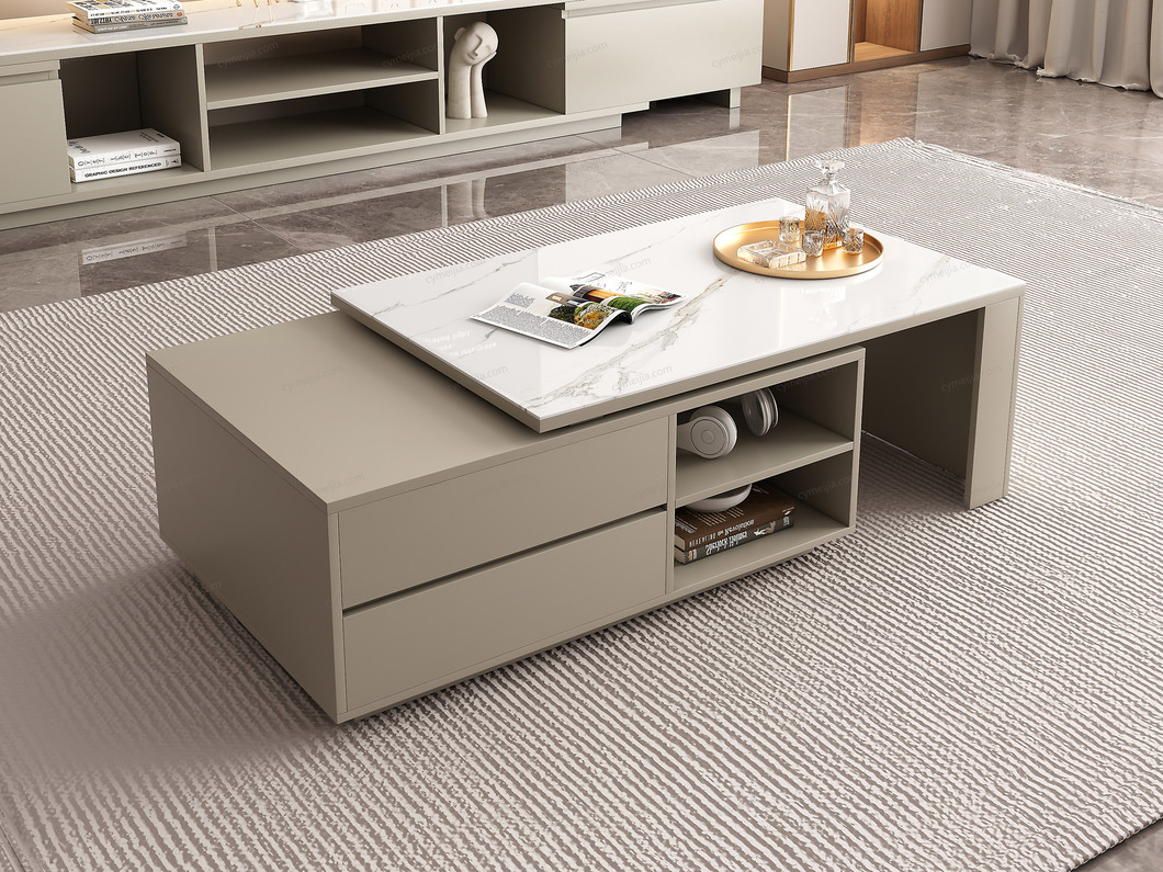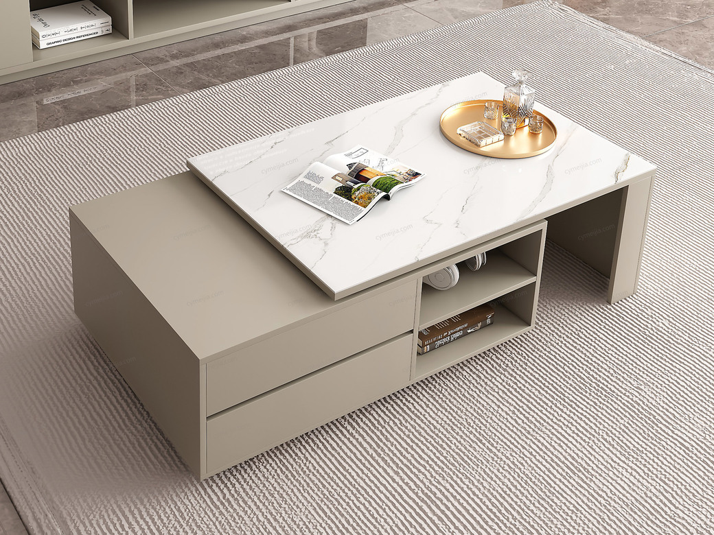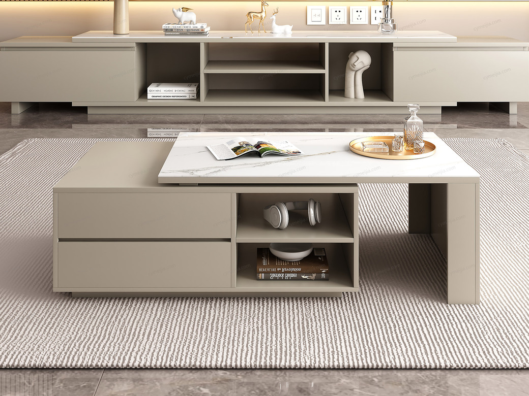 ☀ 分层储物组合:搭配开放式储物格,常用杂志、摆件等拿取更便捷,实现“隐蔽收纳+常用取用”的分类储物需求。