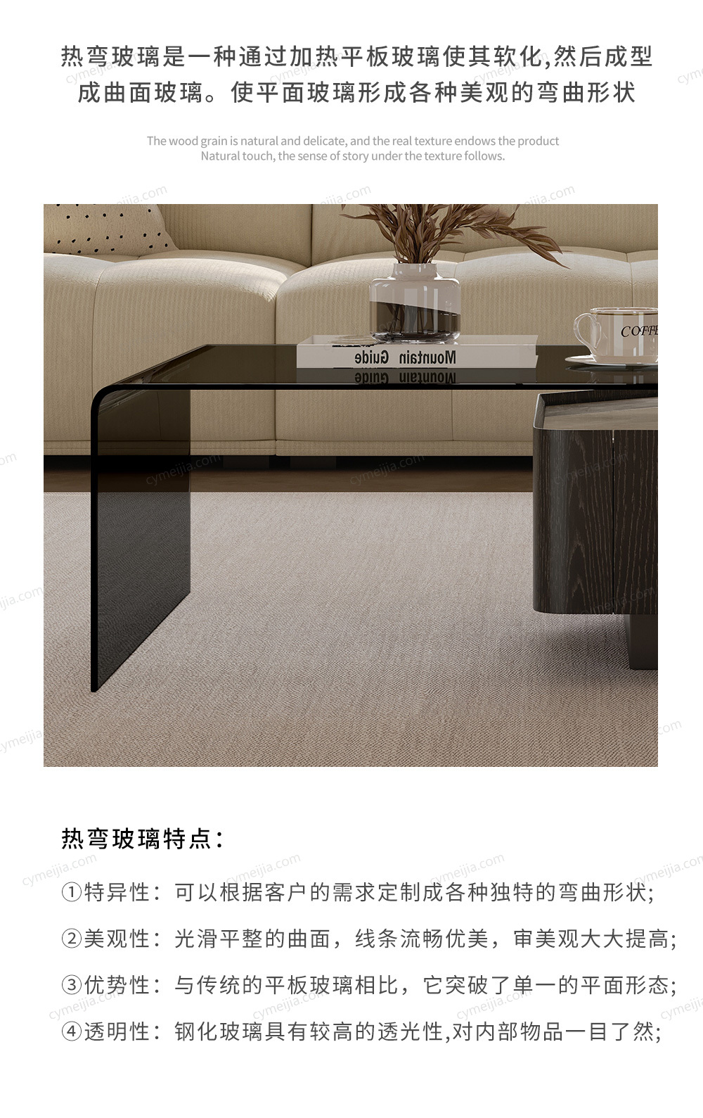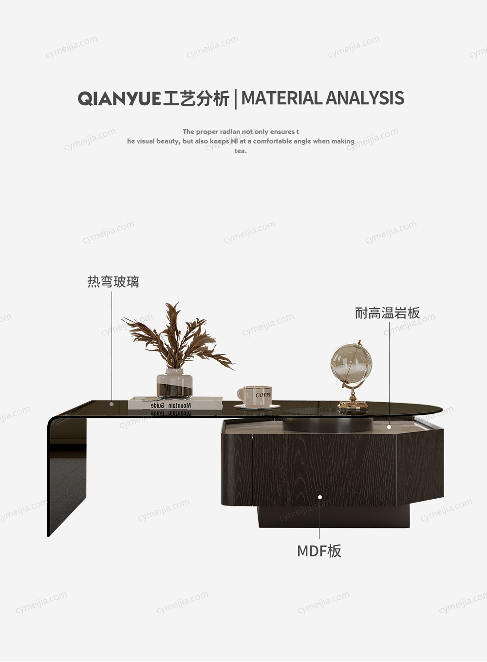 | 产品材质 : | 热弯玻璃+岩板+白蜡木皮 |