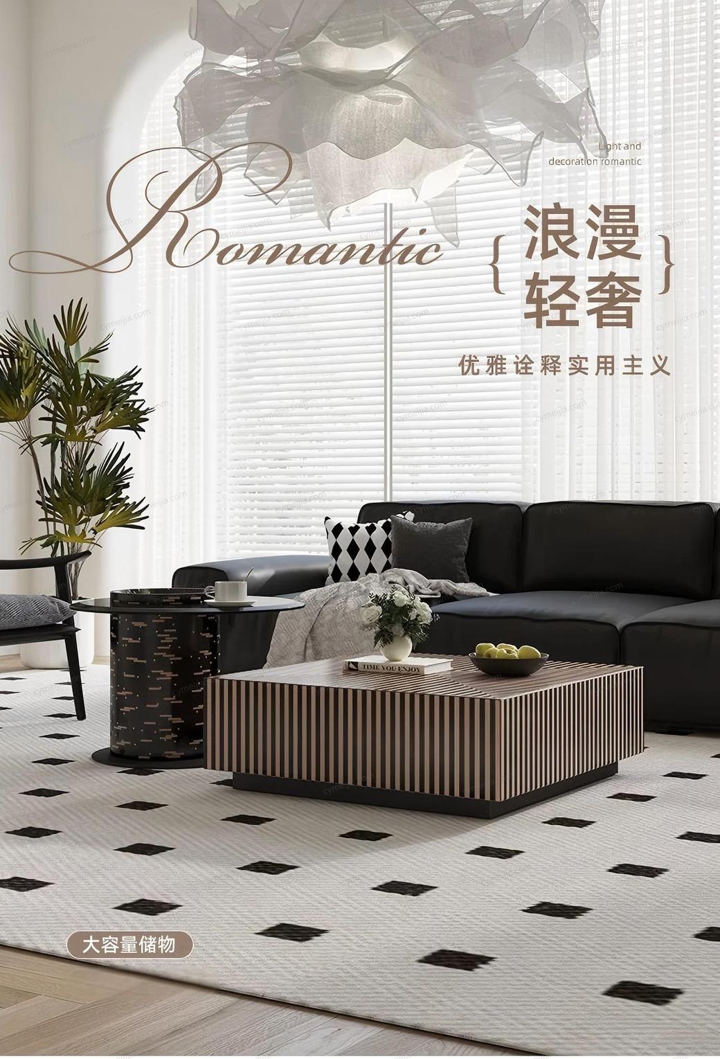 | 规格 : | 茶几:长800*宽800*高280mm;边几:直径550*高490mm |