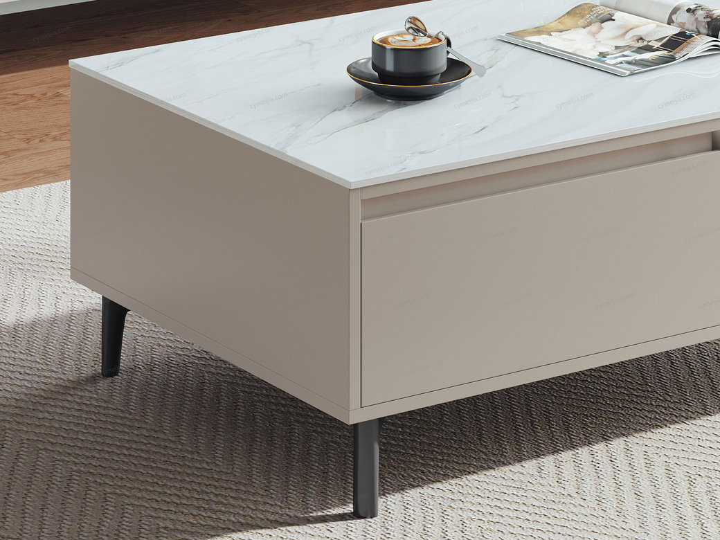 ☀ 质感亮光岩板:细腻平滑亮光岩板,质地坚硬耐磨,表面光滑如镜。抗污耐刮,一擦即净,尽显现代高级格调。