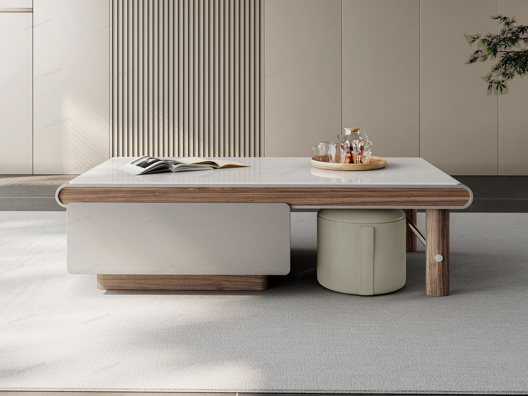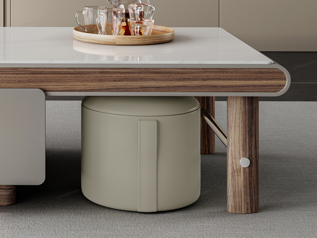 | 产地 : 佛山 | 规格 : 茶几:长1380*宽700*高400mm;圆凳:直径320*高290mm | 产品材质 : 茶几:微晶石+黑胡桃木皮+钢琴烤漆+E1级环保板+不锈钢;圆凳:仿皮+高回弹海绵+E1级环保板 | 更多参数>> |