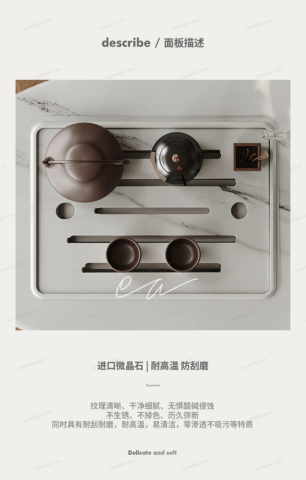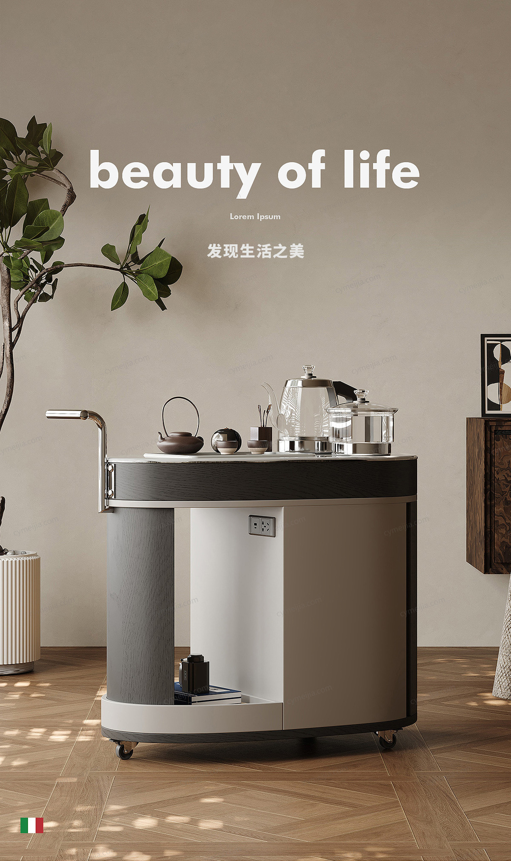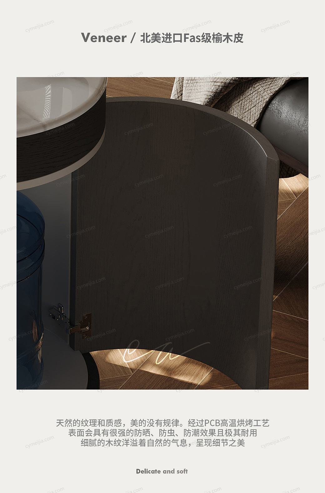 | 产品材质 : | 太空白微晶石+天然榆木皮+哑光肤感钢琴烤漆+不锈钢五金把手+E1级环保板 +茶壶 |