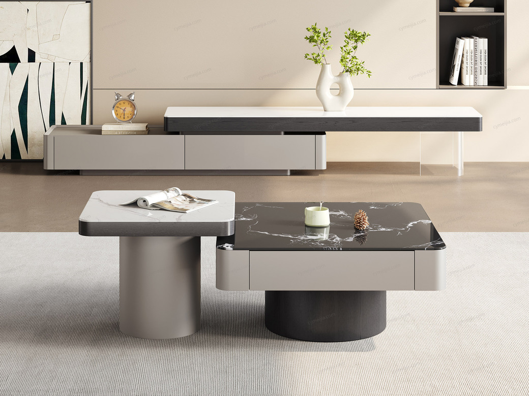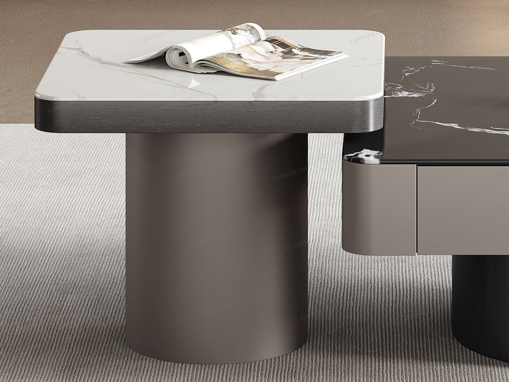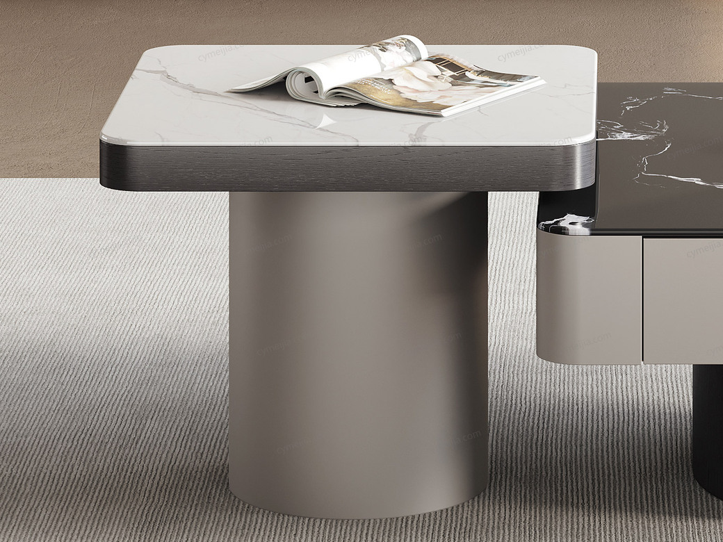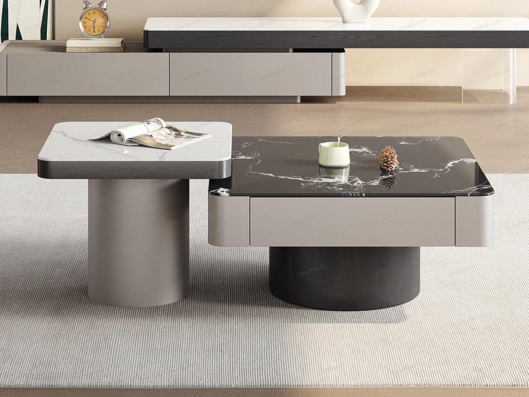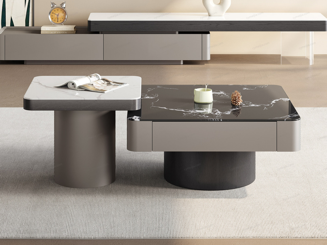 ☀ 优雅微晶石:黑玫瑰微晶石茶几搭配白兰玉微晶石角几,双色碰撞高级感拉满。纹理细腻通透,质感温润耐刮磨,极简风适配多种家居风格。
