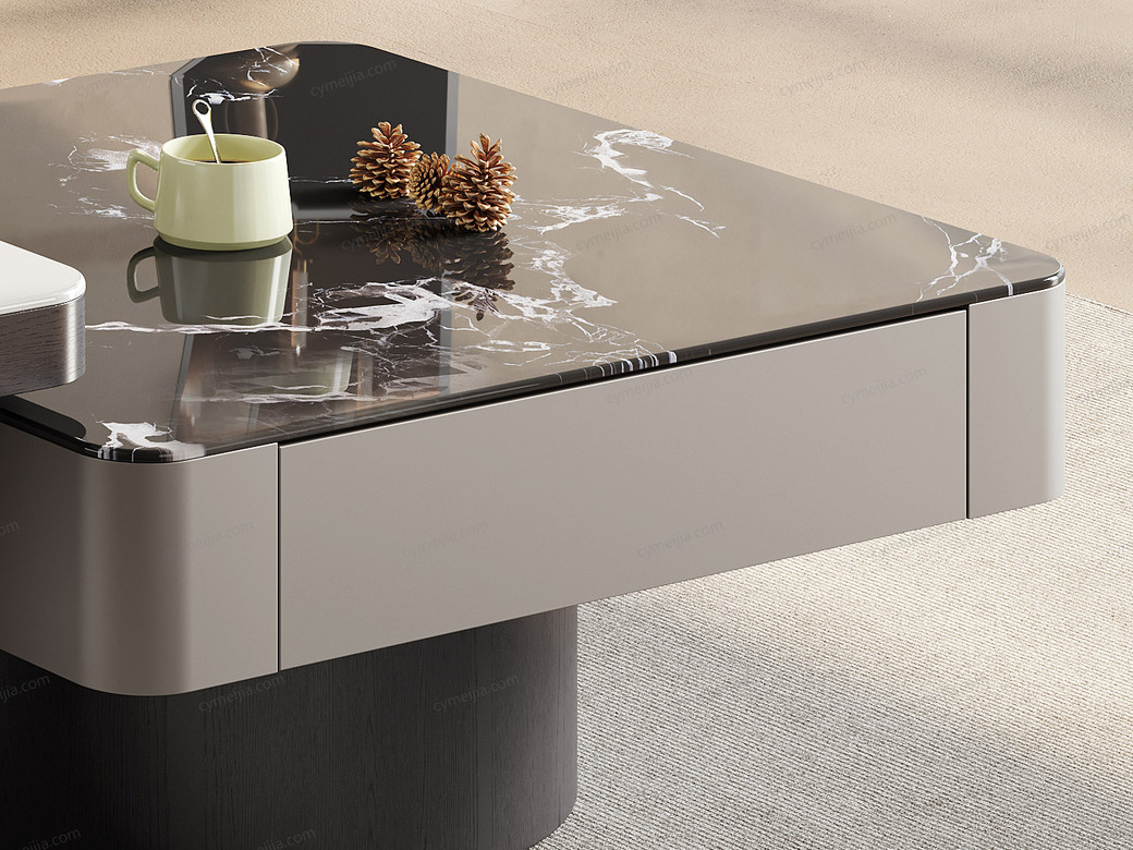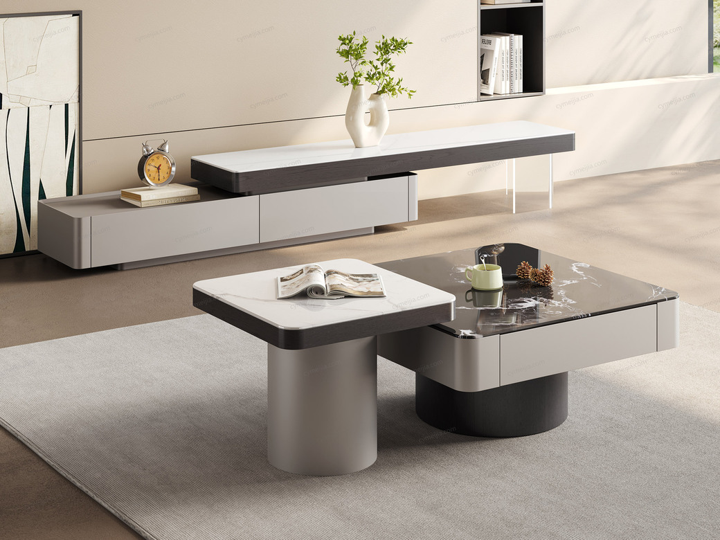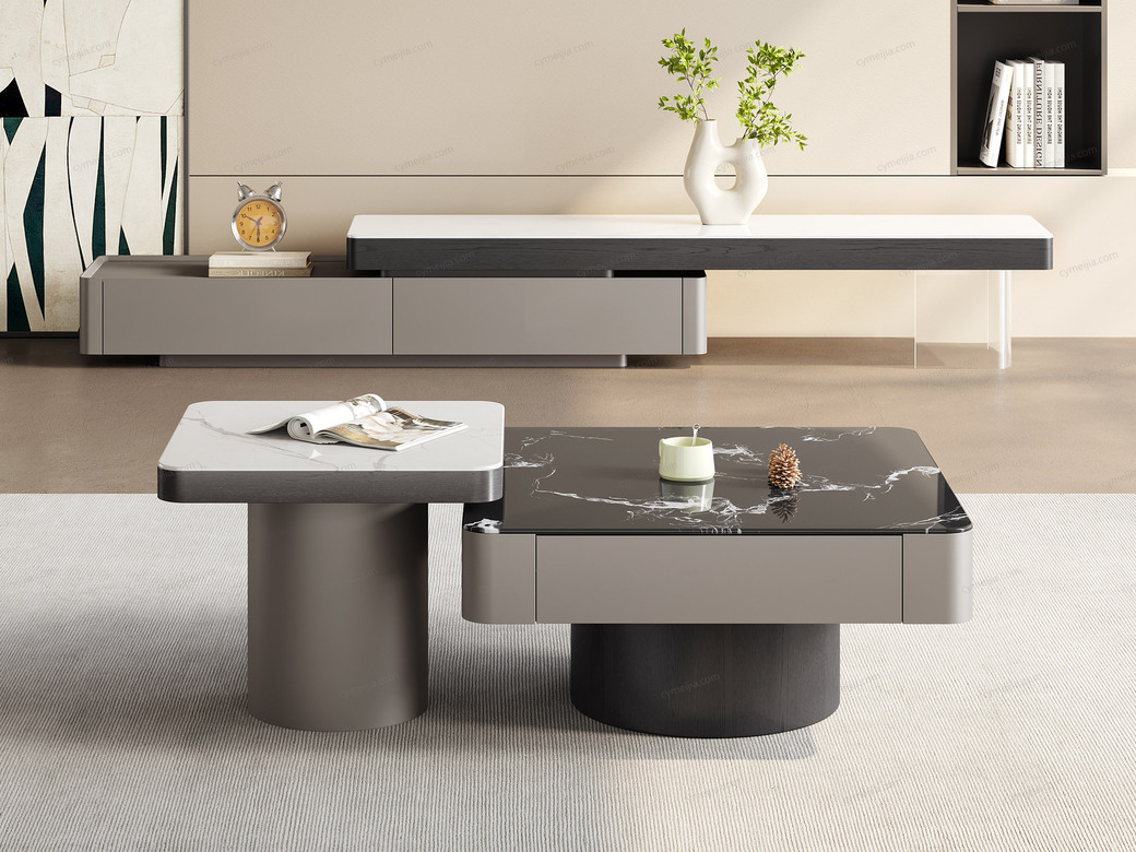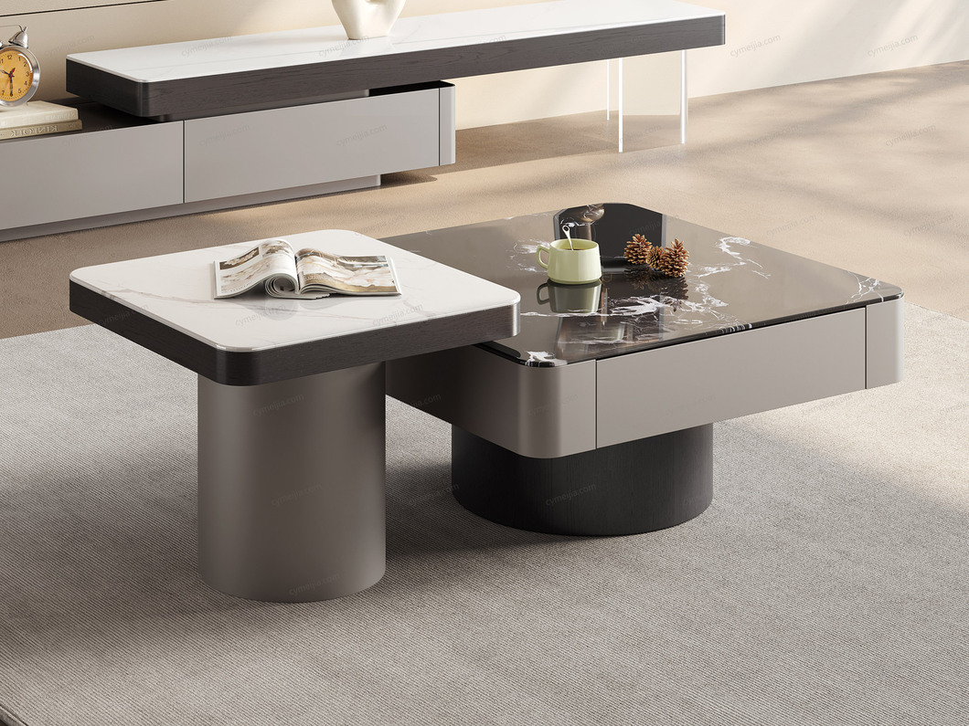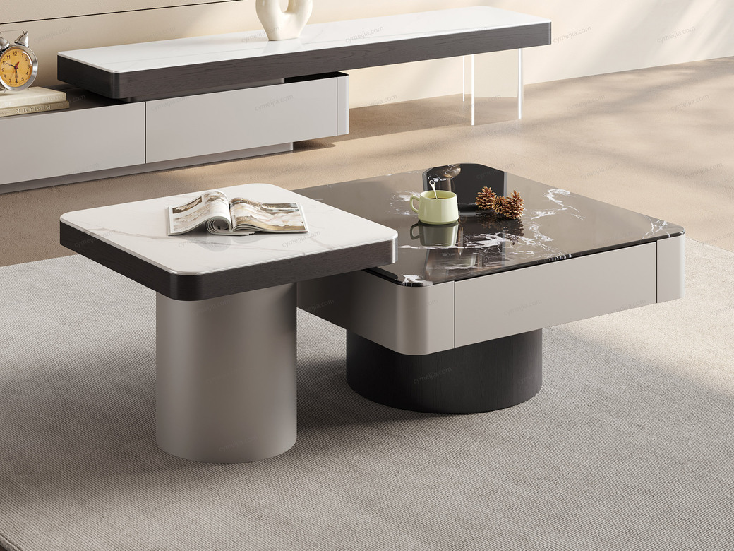 ☀ 优雅微晶石:黑玫瑰微晶石茶几搭配白兰玉微晶石角几,双色碰撞高级感拉满。纹理细腻通透,质感温润耐刮磨,极简风适配多种家居风格。